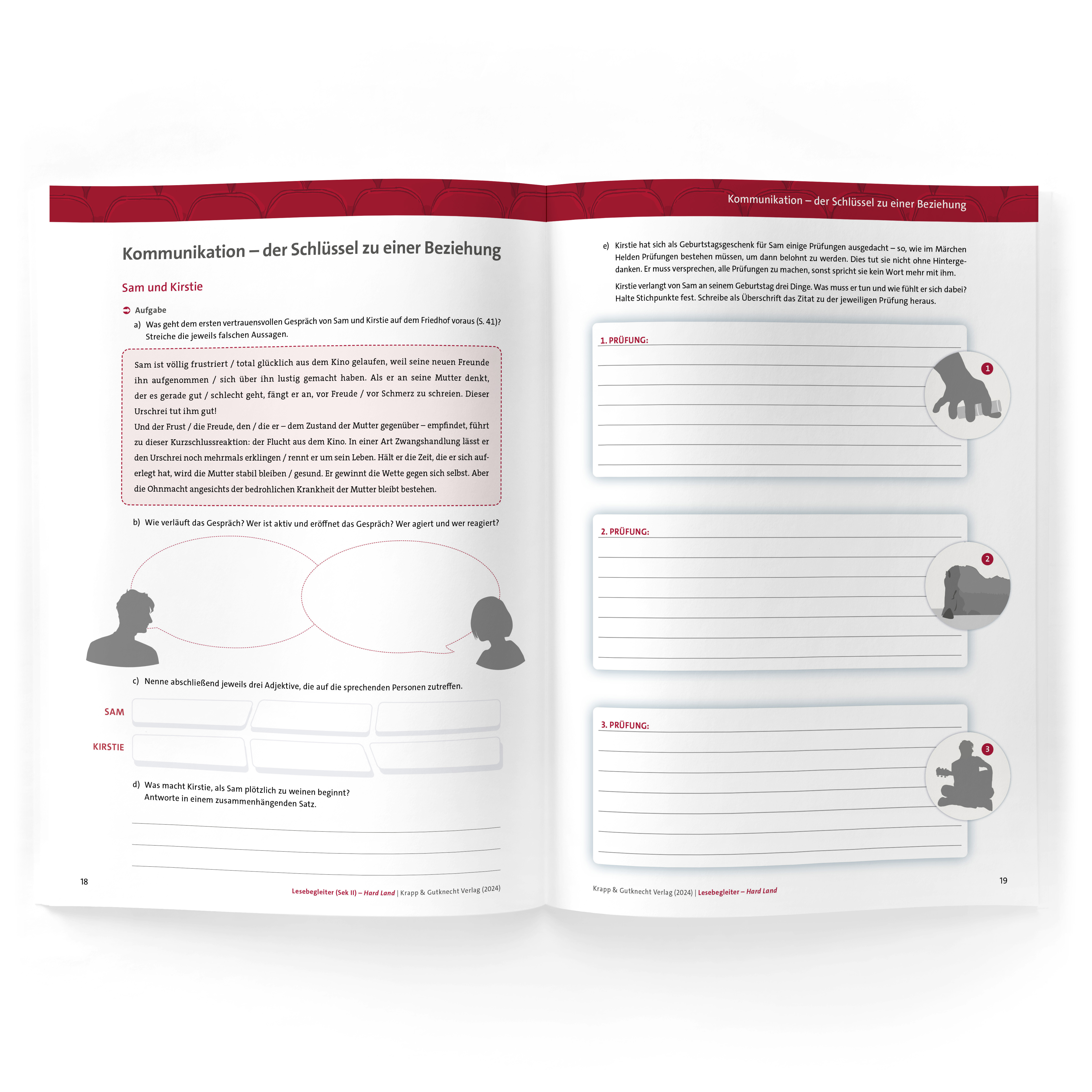 Missouri, 1985:Um vor den Problemen zu Hause zu fliehen, nimmt der 15-jährige Samuel Turner einen Ferienjob im Kino an. Und einen magischen Sommer lang ist alles auf den Kopf gestellt. Er findet Freunde, verliebt sich und entdeckt die Geheimnisse seiner Heimatstadt. Zum ersten Mal ist er kein Außenseiter mehr. Dann passiert etwas, das ihn zwingt, erwachsen zu werden ...Dieser Coming-of-Age-Roman von Benedict Wells bietet viele Aspektean, die vertieft werden können: Pubertät, Mobbing, Minderwertigkeitskomplexe, Identitätssuche, Beziehung zu den Eltern, Freundschaft, Tod einer nahestehenden Person und dessen Verarbeitung sowie das Lebensgefühl der 80er Jahre anhand genannter Filme und Songs.Neben verschiedenen Einstiegsmöglichkeiten in die Thematik stehen die Figuren sowie die Orte der Handlung undderen metaphorische Bedeutung im Vordergrund.Die Entwicklung von Samuel Turner, Selbstbewusstsein und Identitätsbildung sind wichtige Analyseaspekte wie auch derUmgang des Sohnes mit der Krebserkrankung und dem Tod der Mutter.Kreative Schreibanlässe - Rollenbiografie, Verfassen von Dialogen, inneren Monologen, Tagebucheinträgen sind ebensoaufgegriffen worden wie analytische Fragestellungen und formale Aspekte wie Aufbau und Sprache des Romans.Der Lesebegleiter zu Benedict Wells Roman "Hard Land" enthält Aufgaben zuInhaltssicherung/AufbauEinstiegsmöglichkeitenBrainstorming zu Pubertät/TodGedichte/Lieder zu den ThemenZitatkärtchen zum Thema TodOrte und ihre BedeutsamkeitPersonen- und Beziehungsnetz von Sam (Charaktereigenschaften)Sams emotionale WeltEntwicklung von Sam (Selbstbewusstsein - Identitätsbildung)Krankheit und Tod (Krisenbewältigung/Trauerspirale)Niedergang einer StadtVertiefung: Einordnung von Figurenzitaten/Zuordnung von BegriffenRezension des Romans