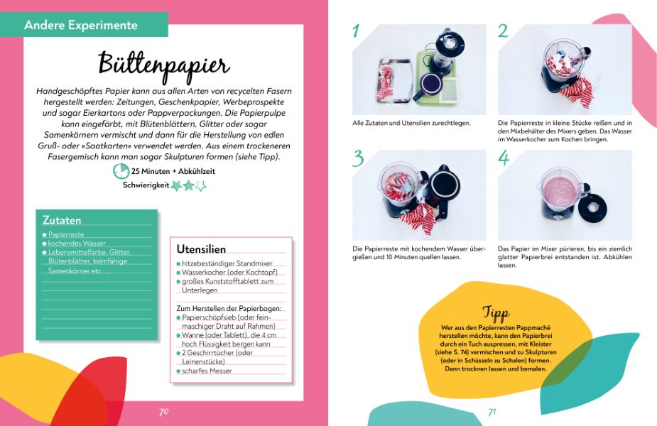Die Zutaten dazu finden sich in jedem Haushalt, und so entsteht schnell Knetmasse oder Fensterfarbe. Die 20 gut verständlichen Anleitungen in diesem Buch regen die Kids an, abzuwiegen, zu vermischen und durchzukneten, und nicht zuletzt, kreativ zu sein. So lässt sich Spielzeug auf spielerische Art selber machen.