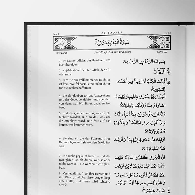 Der Heilige Koran bildet die Grundlage des Islam. Das unverfälschte Wort Gottes enthält alle Gebote und Anweisungen, nach denen ein Muslim sein Leben gestalten sollte. Ein Leitfaden für alle Bereiche des Lebens, angefangen von den Beziehungen des Einzelnen zu seinem Schöpfer bis hin zur Bildung von internationalen Gemeinschaften. Große Prophezeiungen über die Entwicklung der Menschheitsgeschichte sind ebenso klar erwähnt wie Hinweise über vergangene Völker. Die Grundaufgabe des Korans ist die Unterstützung der Menschen beim Erreichen des Lebensziels: Spirituelle und körperliche Vollkommenheit, um zu einer Vereinigung mit Gott zu gelangen. Gottes Wort ist anders als Menschenwort. Ihm eignen Stil und Sprachgebrauch, die manchmal vom Herkömmlichen abweichen und über die von Menschen geschaffenen grammatischen und syntaktischen Gesetze hinwegschreiten. Dank seiner Sprache ist der Quran ein Meisterwerk der hohen Literatur, dessen Schönheit und Reichtum im Ausdruck menschlichen Bemühungen unerreichbar sind. Diese deutsche Ausgabe zählt zu den besten und anerkanntesten Koranübersetzungen überhaupt. Mit ausführlicher religionsphilosophischer Einleitung, Index und Anmerkungen zu wichtigen Themen.