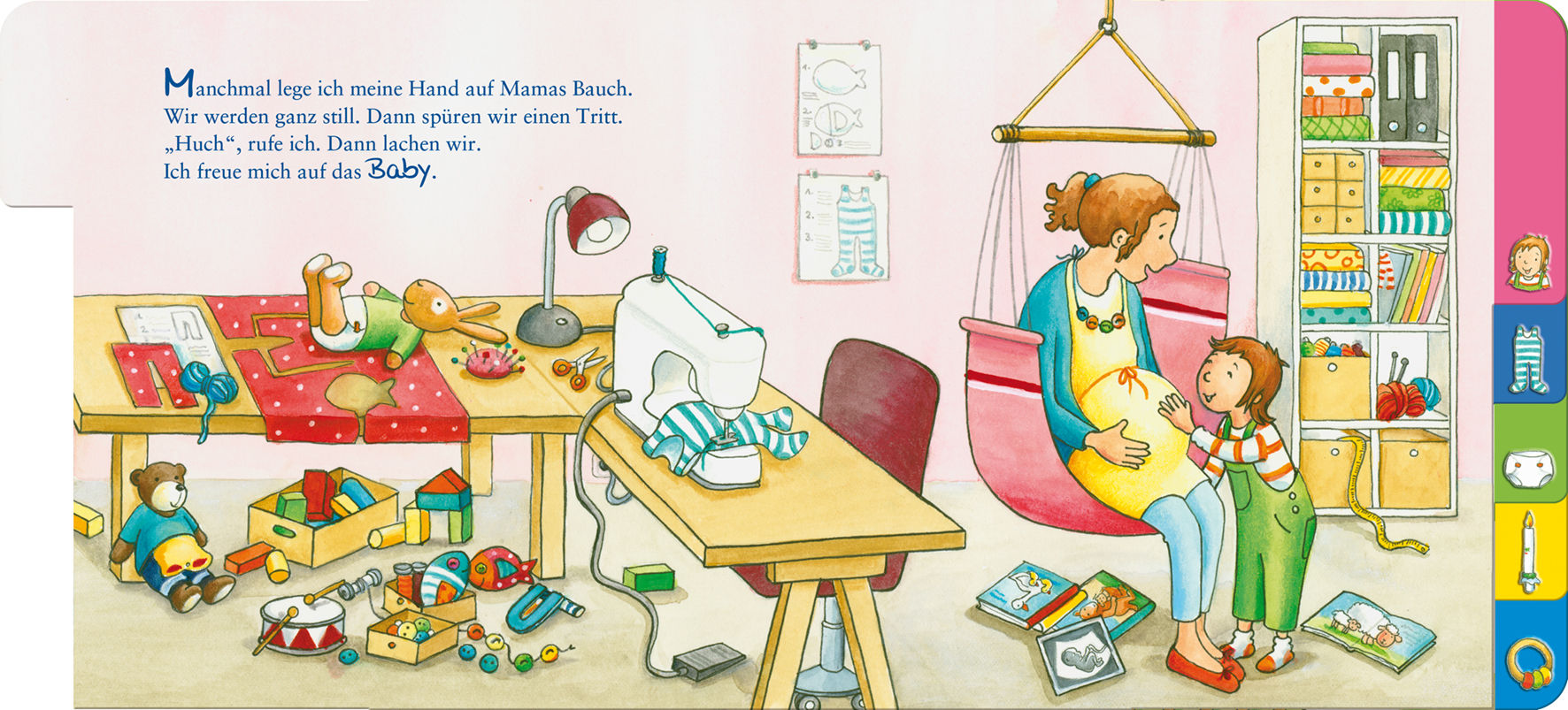 Bald kommt mein Geschwisterchen!Wie sage ich meinem Kind, dass es bald ein Geschwisterchen bekommt? Dieses Buch bietet einen einfachen Einstieg zum Thema Familienzuwachs und bereitet Kleinkinder behutsam auf die Ankunft einer kleinen Schwester oder eines kleinen Bruders vor. Es begleitet durch eine aufregende Zeit: Von der Schwangerschaft und Geburt bis hin zum neuen Familienalltag mit dem Baby und der feierlichen Taufe in der Kirche. Durch die liebevollen Texte wird deutlich: Ein Geschwisterchen ist ein Geschenk Gottes! Ein Gebet und ein Segensritual für die ganze Familie runden das Buch ab.Die farbenfrohen und detailreichen Illustrationen bieten viele Identifikationsmöglichkeiten für Kleinkinder und Gesprächsanregungen für Eltern. Darüber hinaus macht das praktische Griffregister das Umblättern für kleine Kinderhände besonders leicht. Die kleinen Motive am Seitenrand können im Bild gesucht werden und regen so spielerisch zum Wiedererkennen und Benennen an. Ein schönes Geschenk für werdende Eltern und Kleinkinder, die ein Geschwisterchen bekommen.- Begleitet Kleinkinder durch eine besondere Zeit: Von Schwangerschaft und Geburt bis zur Taufe - Bietet Gesprächsanregungen für die ganze Familie- Mit Gebet und Segensritual- Liebevoll und detailreich illustriert- Mit Prägung auf dem Umschlag für einen besonderen haptischen Effekt- Für Kinder ab 2 Jahren