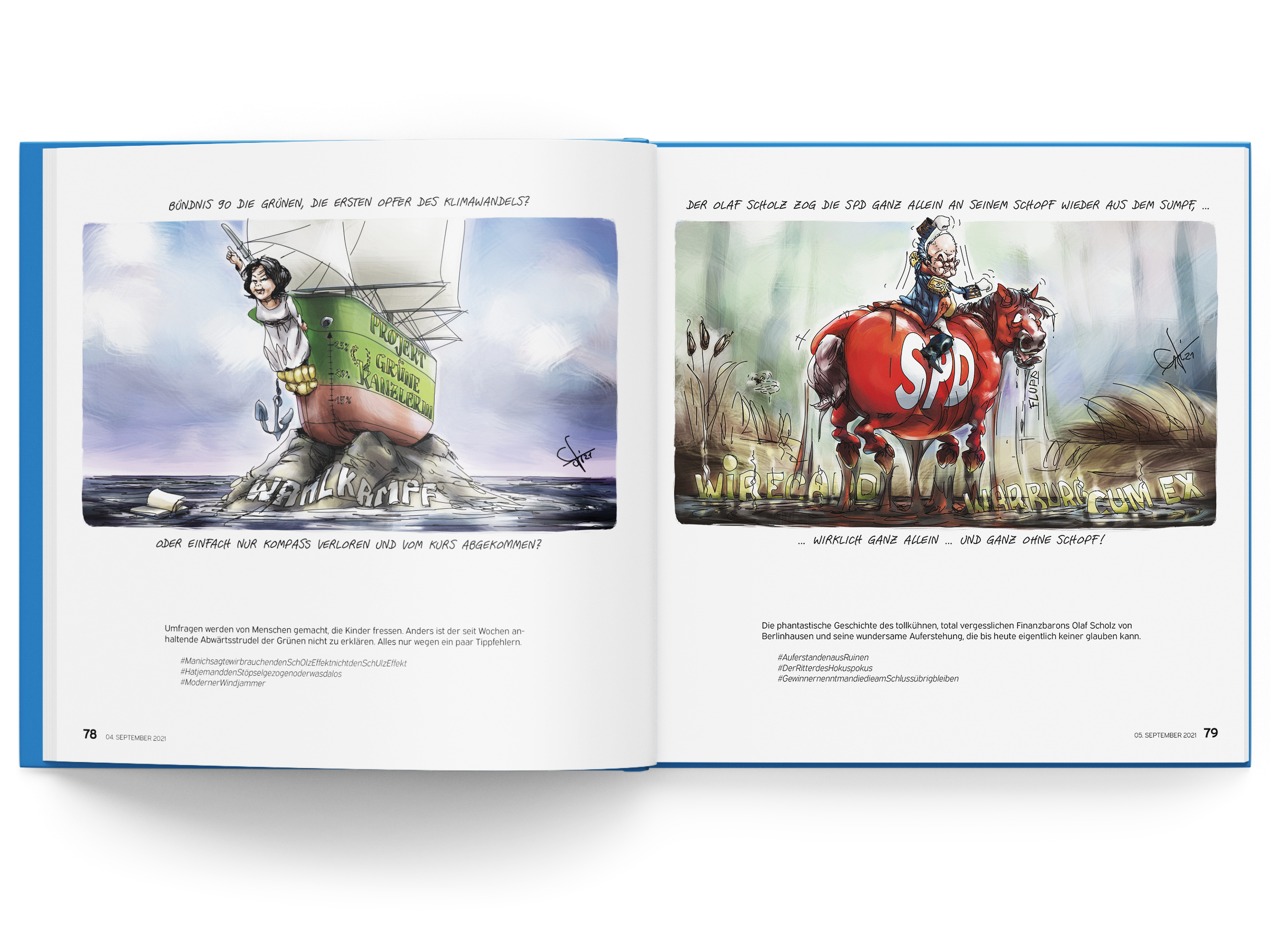| Zusatzinfo | Tagesaktuelle Karikaturen von Donald Trump bis Annalena Baerbock. |