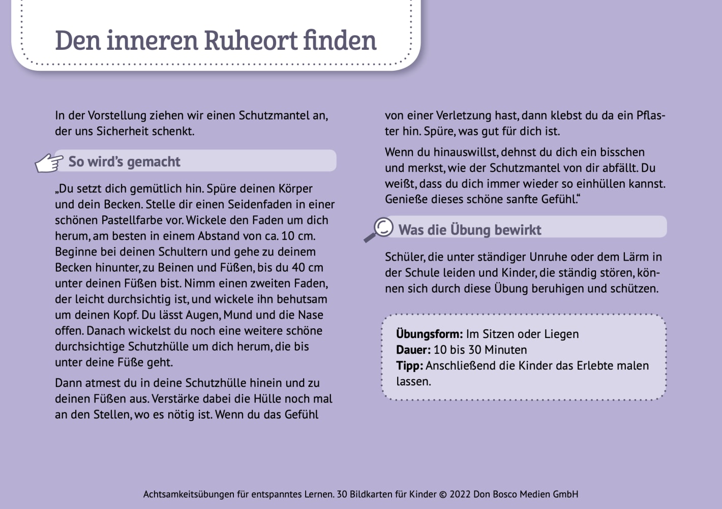 Achtsamkeitsübungen für entspanntes Lernen. 30 Bildkarten für Kinder