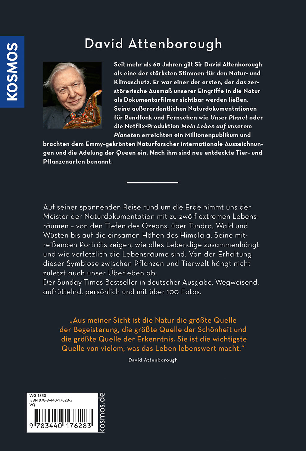 Der legendäre Tierfilmer und Naturforscher Sir David Attenborough beschreibt in seiner unnachahmlichen Art die Lebensräume auf unserem Planeten und erklärt, auf welche geheimnisvolle Weise alles Lebendige zusammenhängt. Das Buch führt uns in eisige Zonen, durch Tundra, Wald, Wüsten und Ozeane bis in die einsamen Höhen des Himalaya. Attenboroughs forschender Blick und sein Enthusiasmus sind unmittelbar ansteckend. Man staunt über die Anpassungsfähigkeit einzelner Arten und begreift die wunderbaren Kräfte der Natur, die die komplexen Bedürfnisse von Tieren und Pflanzen in den verschiedenen Lebensräumen ins Gleichgewicht bringt. Die aktualisierte Ausgabe des Klassikers berücksichtigt den neuesten Stand der Forschung und beschreibt eindringlich die Verletzlichkeit unseres Planeten durch Klimawandel, Umweltzerstörung und Artensterben.
