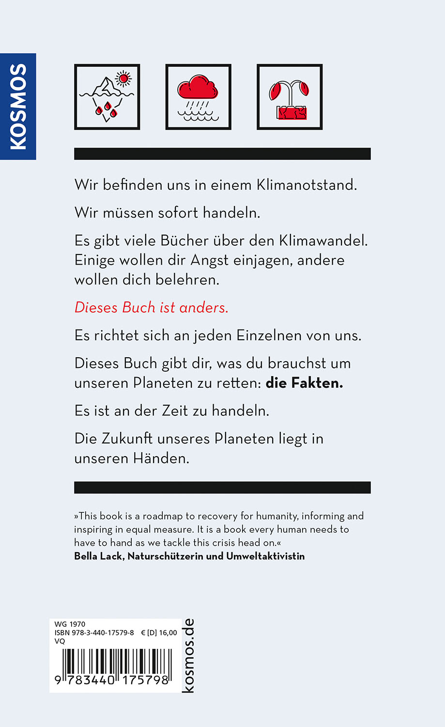 Wie können wir unseren Planeten retten und das 21. Jahrhundert überleben? Wie argumentiert man mit Leugnern des Klimawandels? Wie können wir hier und jetzt die Klimawende schaffen? Dieses ungewöhnlich gestaltete Buch nennt die Fakten: kurz und kompakt, wissenschaftlich fundiert und nachprüfbar. Der bekannte Klimaexperte Prof. Mark Maslin entwirft keine Utopien, sondern liefert stichhaltige Argumente und gibt konkrete Tipps, was jeder von uns im Alltag beitragen kann. Wir haben allen Grund zum Optimismus, denn unsere Zukunft liegt ganz allein in unseren Händen. Zeit, den Tatsachen ins Auge zu blicken und unsere Erde vor und für uns zu retten!
