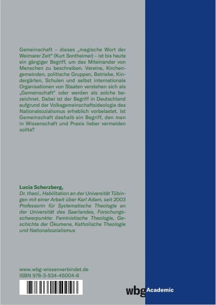Gemeinschaft - dieses "magische Wort der Weimarer Zeit" (Kurt Sontheimer) - ist bis heute ein gängiger Begriff, um das Miteinander von Menschen zu beschreiben. Vereine, Kirchengemeinden, politische Gruppen, Betriebe und selbst internationale Organisationen von Staaten verstehen sich als "Gemeinschaft" oder werden so bezeichnet. Dabei ist der Begriff in Deutschland aufgrund der Volksgemeinschaftsideologie des Nationalsozialismus erheblich vorbelastet. Spielt diese Vorgeschichte heute noch eine Rolle? Ist Gemeinschaft ein Begriff, den man in Wissenschaft und Praxis lieber vermeiden sollte? Dieser Frage geht der Band nach. Ausgangspunkt ist die Reflexion der soziologischen und philosophischen Grundlagen wissenschaftlicher und politischer Diskurse um den Gemeinschaftsbegriff. Es werden Beispiele der Vergemeinschaftung mit den dazugehörigen Einschluss- und Ausschlusskriterien in verschiedenen Geisteswissenschaften, aber auch in den Kirchen und der internationalen Politik diskutiert.