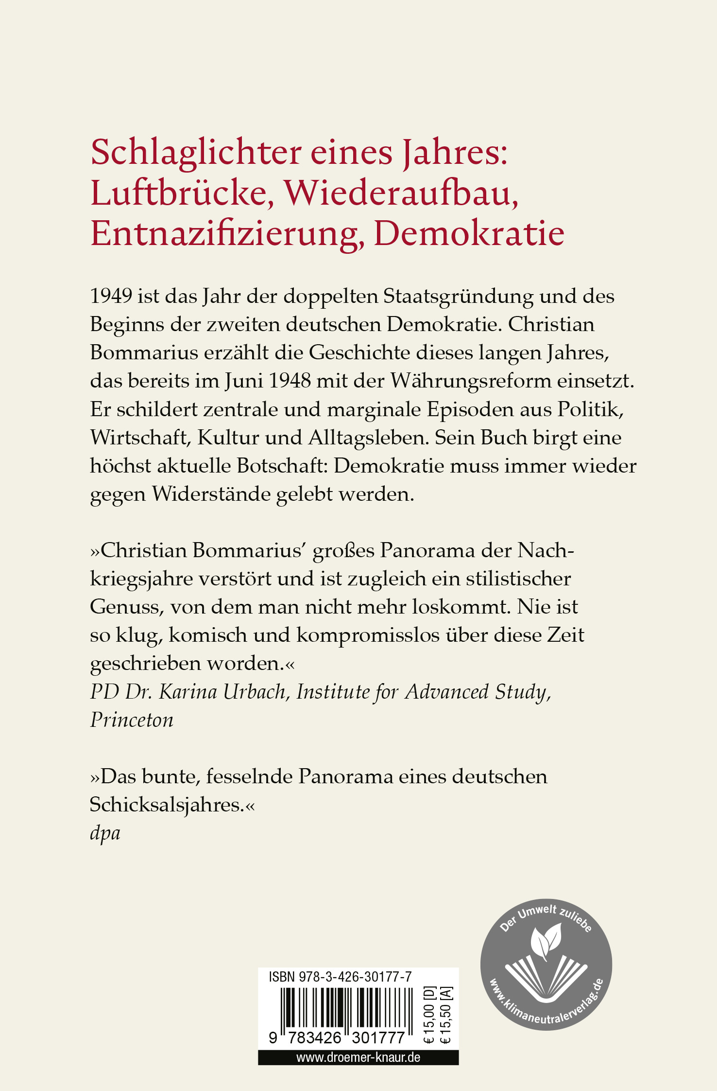 »Christian Bommarius' großes Panorama der Nachkriegsjahre verstört und ist zugleich ein stilistischer Genuss, von dem man nicht mehr loskommt. Nie ist so klug, komisch und kompromisslos über diese Zeit geschrieben worden.« Karina Urbach, Institute of Historical Research, University of London