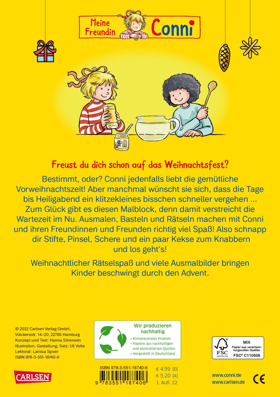 Mit diesem winterlichen Malblock vergeht die Wartezeit bis Weihnachten im Nu. Hier malen, basteln und rätseln sich kleine Conni-Fans durch die Adventszeit. Wo versteckt sich der niedliche Schneehase und wer begleitet Conni auf den Weihnachtsmarkt?