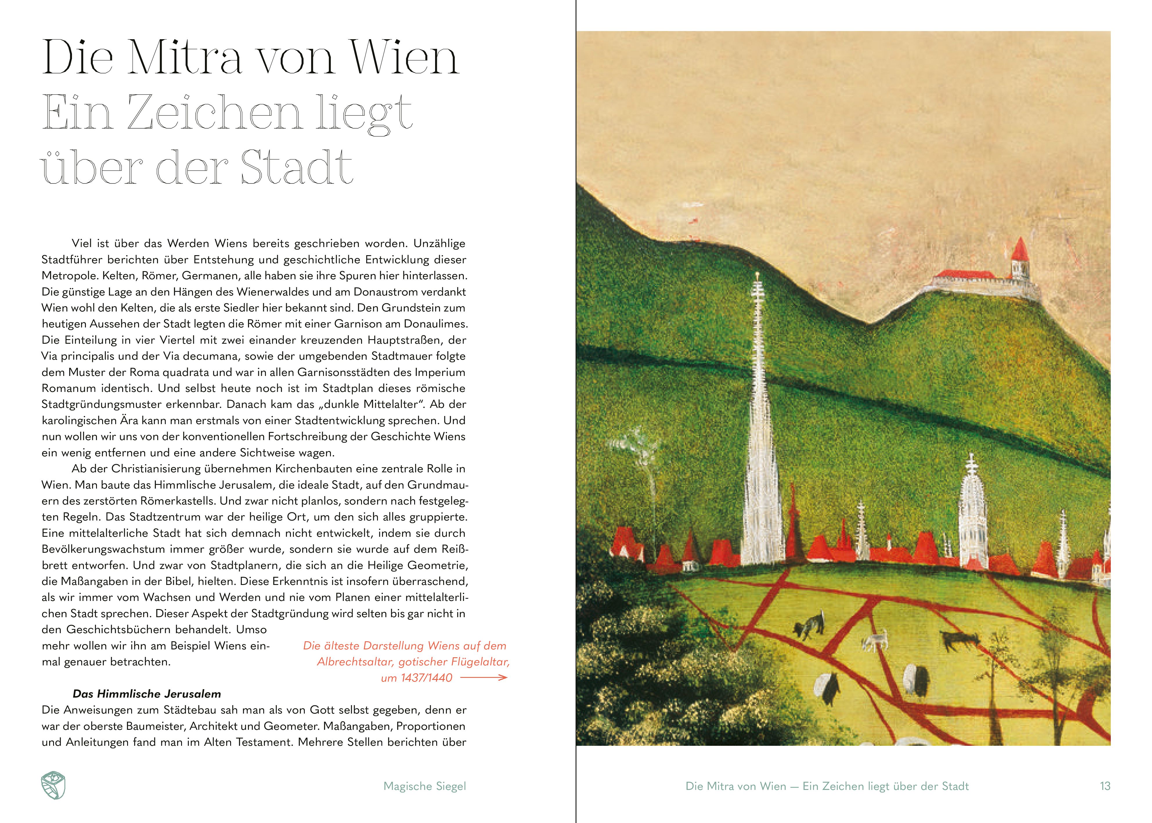 VorwortMagische Siegel12 Die Mitra von Wien - Ein Zeichen liegt über der Stadt18 Das Pentagramm von Schönbrunn - Im Schutz des Drudenfußes22 Das Hexagramm - Zunftzeichen der Wiener Bierbrauer26 Zahlenmystik eines Renaissancekaisers - Schloss Neugebäude32 Die magische Drei - Die Pestsäule am Graben36 Runen am Kanzleramt - 1, Ballhausplatz Nr. 240 Der Thron der Liebe - Kaiser Josephs NarrenturmHabsburger Geheimschriften48 Was ist Kryptographie?50 Alphabetum Kaldeorum - Herzog Rudolfs Chiffre54 AEIOU - Das mystische Motto Österreichs60 Wer nicht versteht zu täuschen ... - Kaiser Maximilians Tagebücher66 Das geheimnisvollste Buch der Welt - Das Voynich Manuskript70 "Enthält nichts Schlechtes" - Maria Theresias Geheimes Hausarchiv78 Hieroglyphen, die es nicht geben dürfte - Schloss SchönbrunnRätselhafte Zeichen88 Im Zeichen des Drachen - Federlhof - 1, Lugeck Nr. 792 Wer ist gegen uns? - Kritzelschrift am Schweizertor96 Göttliches Wortspiel - Die Franziskanerkirche100 Das Kipferlhaus - 1, Grünangergasse Nr. 8104 Zum Rauhen Stein - 1, Rauhensteingasse Nr. 3108 Arabische Verse - 1, Griechengasse Nr. 7110 Die Gralsbotschaft - Geheimnisvolle Inschrift in der AchatschaleVerschlüsselte Botschaften116 Leonardos Mysterium - Der Da Vinci Code in Wien122 Das Geheimnis des Zwölf-Apostelkellers - 1, Sonnenfelsgasse Nr. 3126 Die Sieben im Leben Prinz Eugens - Schloss Belvedere132 Die Seen des Himmels - Eine Parallelwelt auf dem Kahlenberg136 "Nicht ganz werde ich sterben" - Joseph Haydn, das kopflose Genie140 Nazibotschaft im Zeichen des Sonnenrades - Heldendenkmal146 Nicht unknackbar - Des Führers Chiffrier-Maschinen150 An den Wanderfreund - Rätsel im GemeindebauZahlen- & Buchstabencodes156 O5 - Der Code des Widerstands158 Chiffren der Barockzeit - Chronogramme164 Kaiserlicher Fingerabdruck - Monogramme168 Tacui - Das Schweigen des Brückenheiligen172 Die Eroberung Wiens - Pixel Codes des 21. JahrhundertsBauhüttengeheimnisse am Stephansdom178 Wo der Stein spricht - Unerforschliches St. Stephan184 Maurerzeichen - Botschaften der Bauhütten190 Das Geheimnis der Zahl 37 - Der Schlüssel zum Dombau196 Fünf Pfennige am Tag - Das Mysterium der Steinmetzzeichen