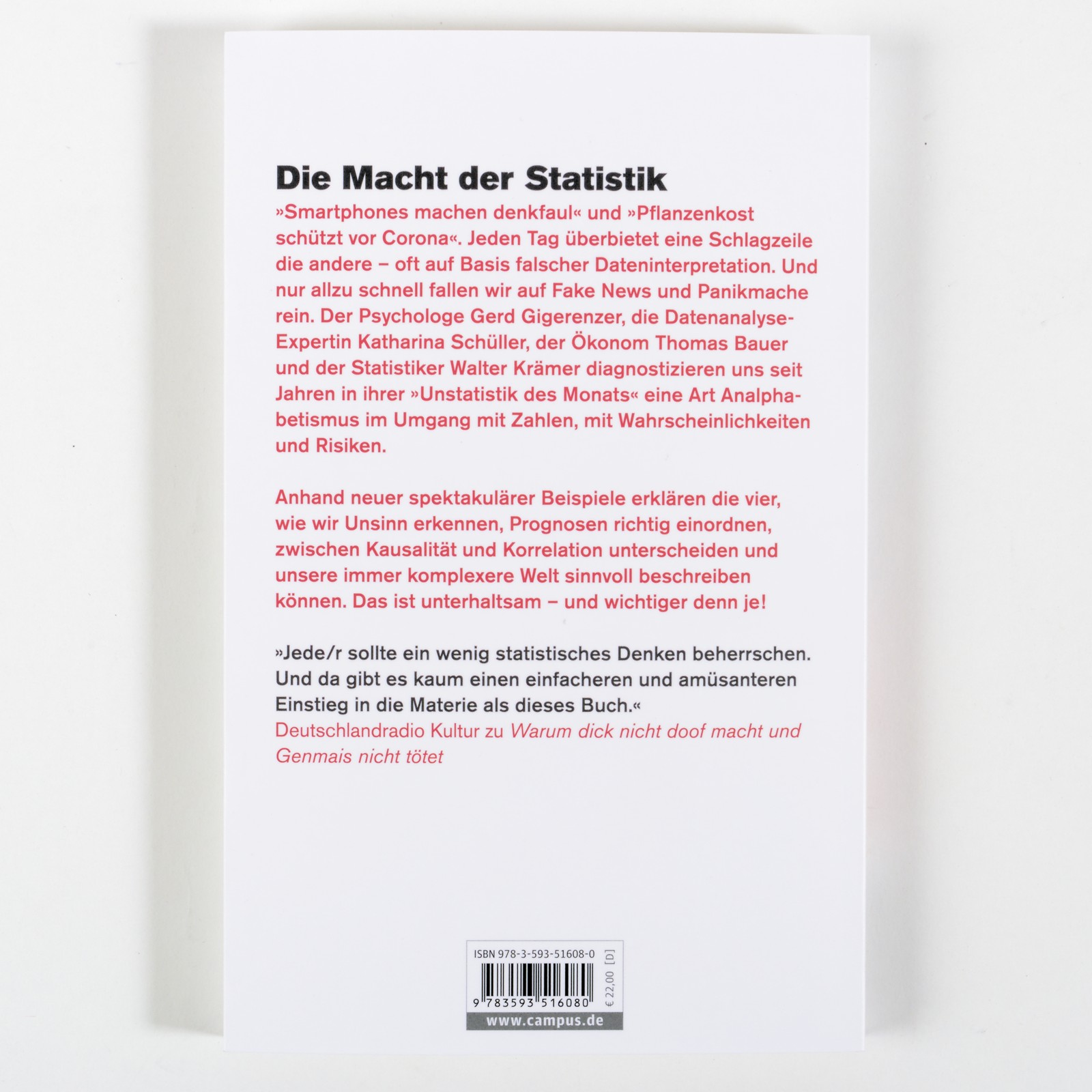 Das Verhältnis von Daten und Realität fordert uns heute besonders heraus, und nur allzu schnell fallen wir auf Fake News und Panikmache rein. Jeden Tag überbietet eine Schlagzeile die andere – oft auf Basis falscher Dateninterpretation. Der Psychologe Gerd Gigerenzer, die Datenanalyse-Expertin Katharina Schüller, der Ökonom Thomas Bauer und der Statistiker Walter Krämer diagnostizieren uns seit Jahren in ihrer »Unstatistik des Monats« eine Art Analphabetismus im Umgang mit Zahlen, mit Wahrscheinlichkeiten und Risiken.