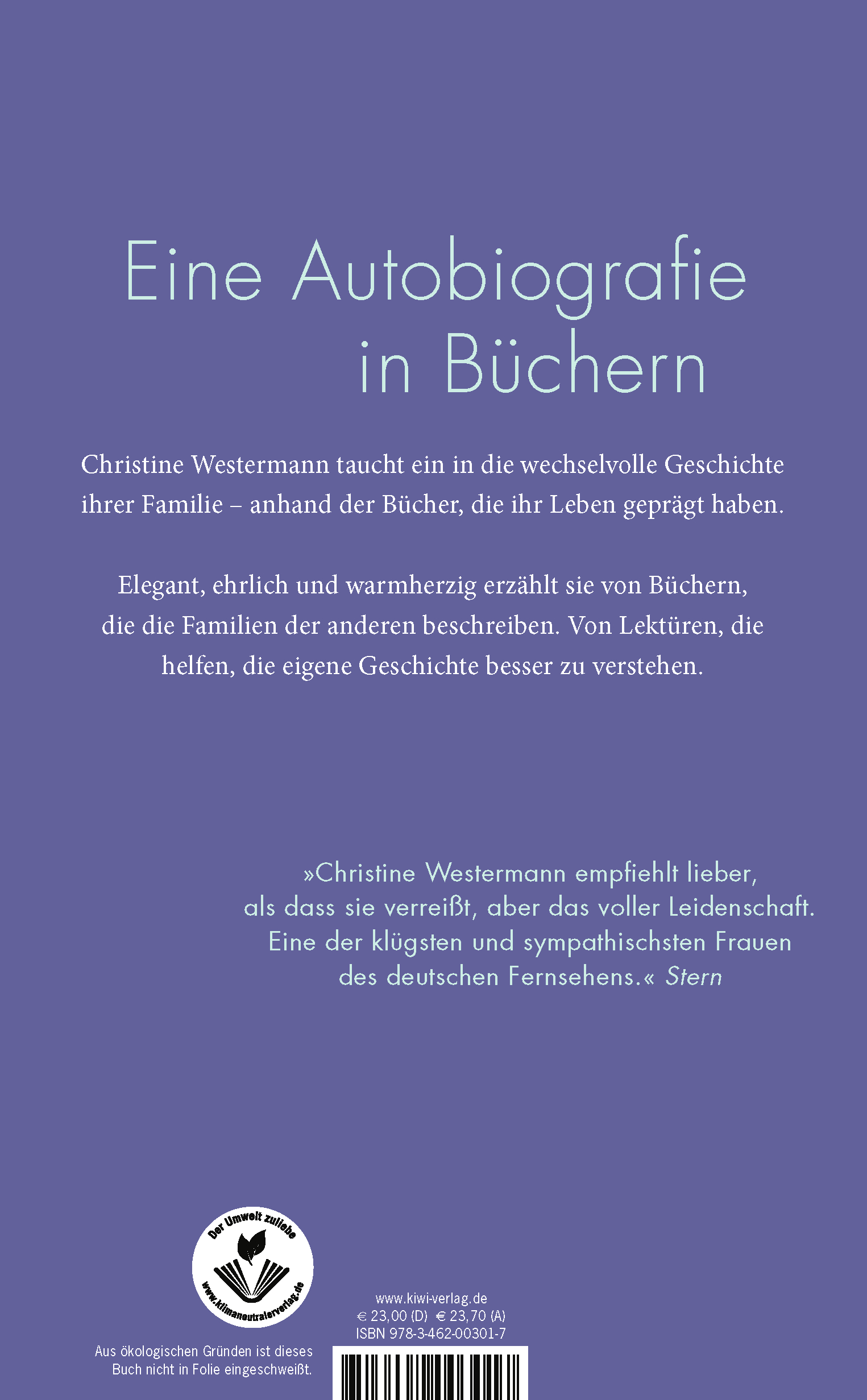 Christine Westermann ist mit ihren Buchempfehlungen im Stern, ihren Sendungen im Hörfunk (Buchtipps im WDR), als Kolumnistin des »Buchjournals« und als Podcasterin eine der bekanntesten Buchkritikerinnen. Sie war festes Mitglied in der Fernsehsendung »Das literarische Quartett«. Für ihre gemeinsam mit Götz Alsmann moderierte TV-Sendung »Zimmer frei« erhielt sie u.a. den Adolf-Grimme-Preis. Christine Westermann hat bislang fünf Bücher veröffentlicht, die allesamt Bestseller wurden.