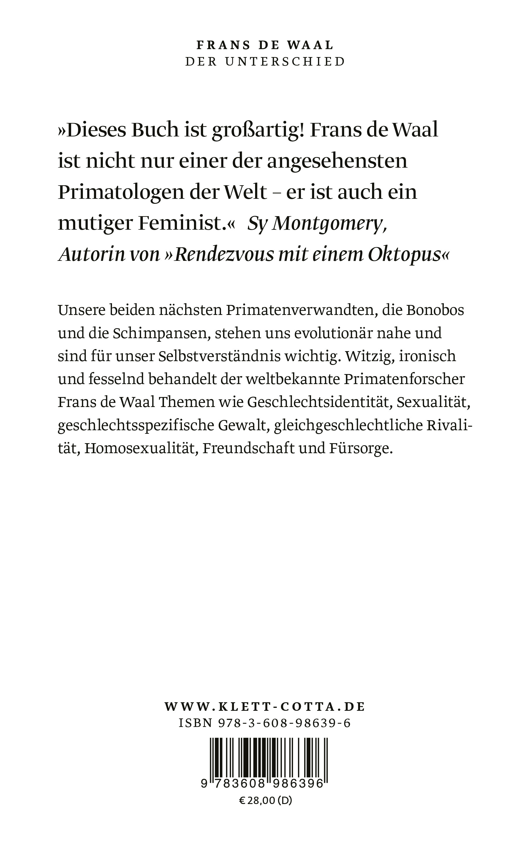 »Die aktuelle Debatte über Geschlechterunterschiede braucht eine ruhige biologische Bewertung, die uns Frans de Waals nachdenkliches Buch »Unterschied« liefert.« Desmond Morris, Autor von The Naked Ape: A Zoologist's Study of the Human Animal