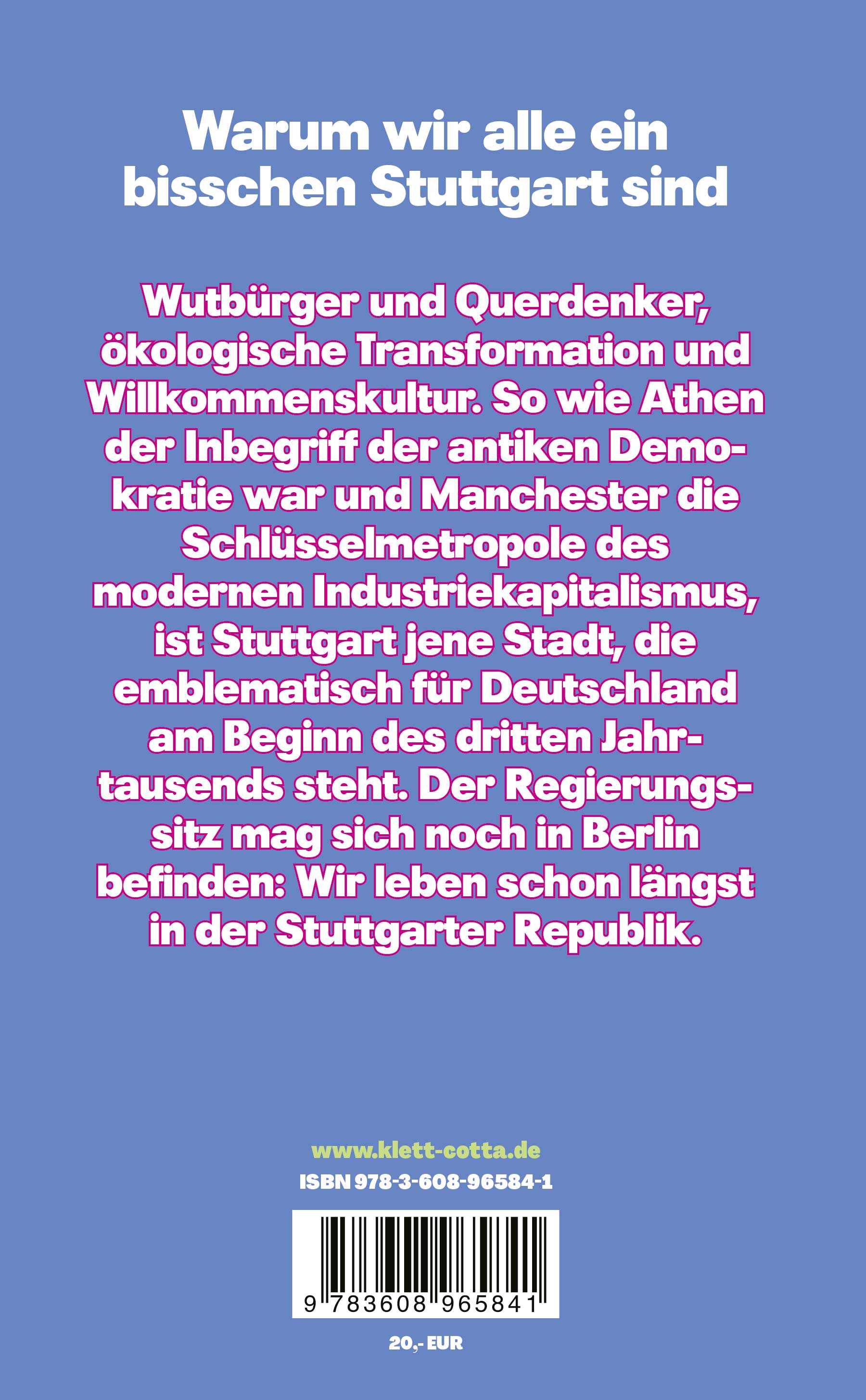 Wutbürger und ökologische Transformation, Querdenker und Willkommenskultur. So wie Athen der Inbegriff der antiken Demokratie war und Manchester die Schlüsselmetropole des modernen Industriekapitalismus, ist Stuttgart jene Stadt, die emblematisch für Deutschland am Beginn des dritten Jahrtausends steht. Der Regierungssitz mag sich noch in Berlin befinden: Wir leben schon längst in der Stuttgarter Republik.