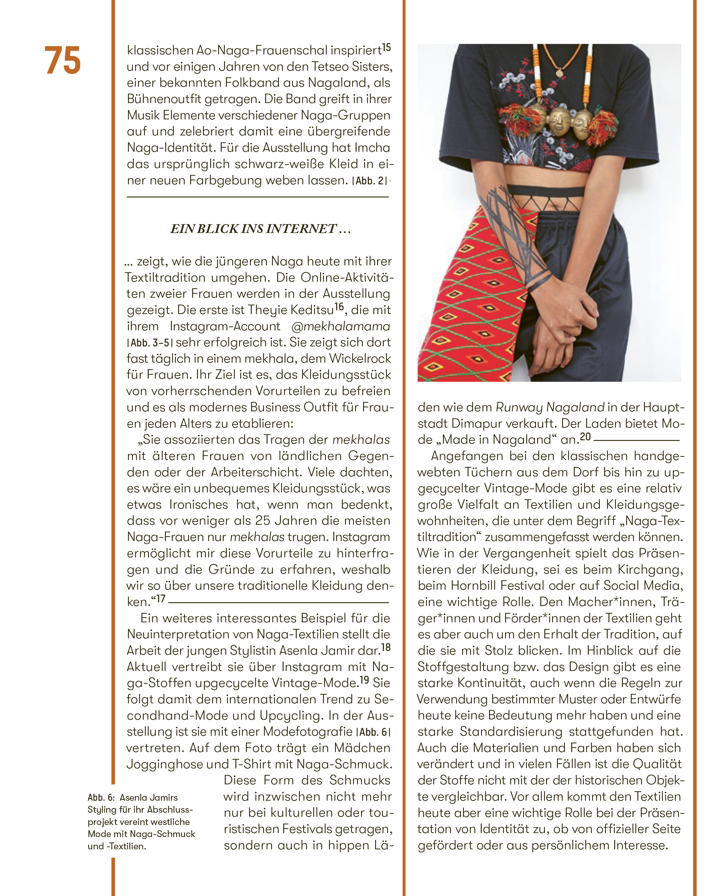 Die Naga bilden eine Minderheit im Nordosten Indiens und im Nordwesten Myanmars – und bestehen zugleich aus über 30 verschiedenen Ethnien: drei bis vier Millionen Menschen, mit zahlreichen Sprachen. Wie gelingt es ihnen, ihre traditionellen Überlieferungen zu bewahren und in veränderte Lebensweisen zu integrieren? Wie passen moderne Tattoos, Mode und Social Media zusammen? Welche Rolle spielt die christliche Religion? Autor/-innen u. a. aus Nagaland beschreiben unterschiedliche Facetten ihrer gegenwärtigen und vergangenen Kultur und lassen die um zeitgenössische Gegenstände ergänzte Naga-Sammlung des Ethnologischen Museums Berlin in neuem Licht erscheinen. Die Künstlerin Zubeni Lotha veranschaulicht das heutige Leben der Naga in beeindruckenden Fotografien. The Naga form a minority in Northeast India and the northwest of Myanmar — and consist at the same time of thirty different ethnicities: three to four million people, with numerous languages, but no central government structures. How do they manage to preserve their traditional history and integrate into altered ways of life? How do their former practice of headhunting fit together with modern tattoos, fashion, and social media? What role does Christianity play? Authors among others from Naga Land describe various facets of their contemporary and current culture and make the Naga collection of the Ethnological Museum in Berlin appear in a new light, supplemented with contemporary objects. The artist Zubeni Lotha shows the life of the Naga today in impressive photographs.