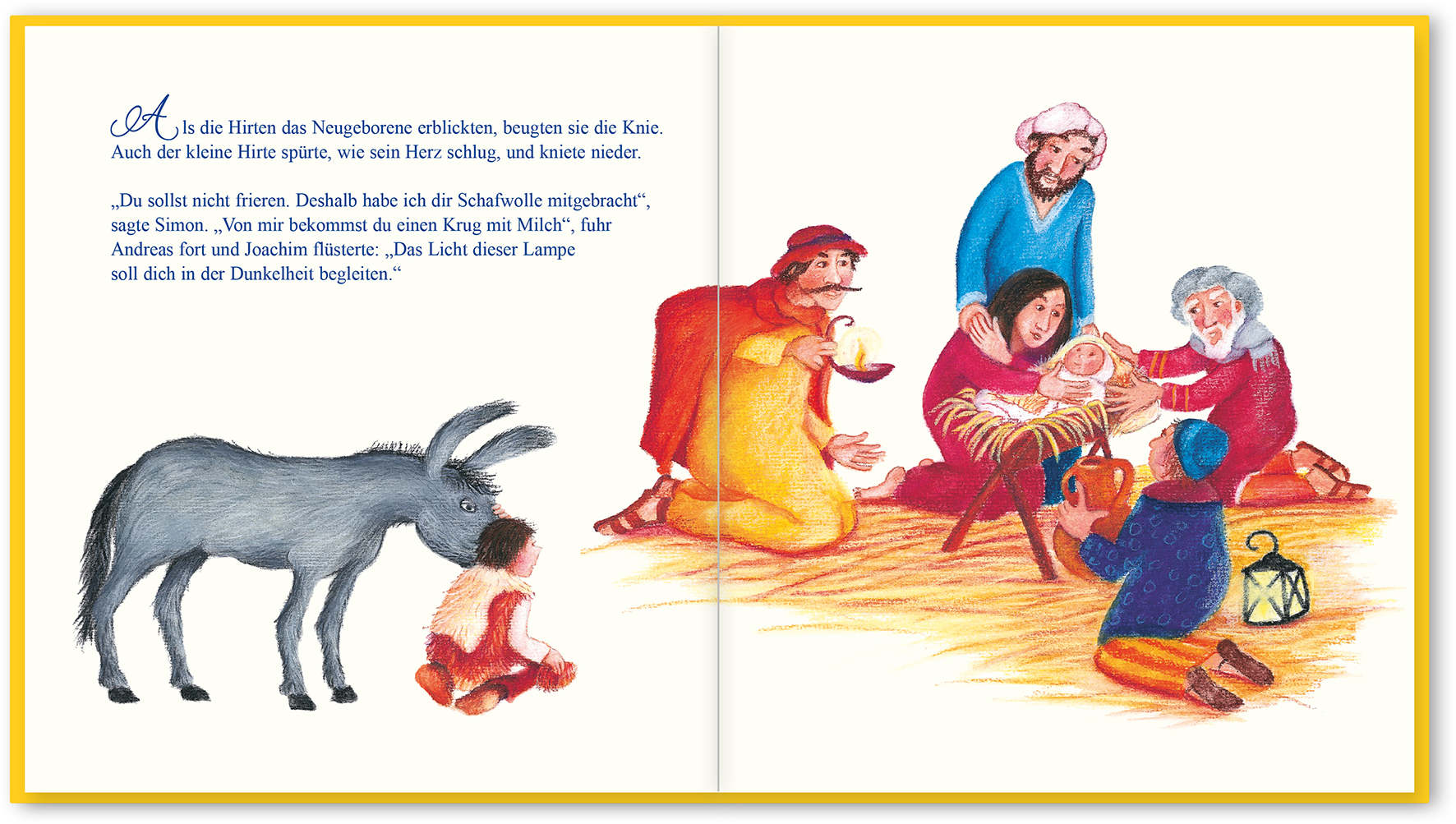 Weihnachtliches Bilderbuch für Kinder ab 3 JahrenDer kleine Hirte schläft tief und fest. Er bemerkt nicht, dass die Engel auf dem Feld die frohe Botschaft verkünden, er hört nicht, dass die anderen Hirten aufbrechen, um das Kind im Stall zu suchen. Als er aufwacht, ist er allein. Mit seinem Esel macht er sich auf die Suche nach den anderen Hirten. Schließlich findet auch er das kleine Jesuskind. Doch er hat kein Geschenk wie die anderen Hirten. Traut er sich, das zu verschenken, was ihm am meisten bedeutet? Die Geschichte von Erich Jooß ist ein Klassiker, der kleine und große Leser verzaubert. Margret Bernard-Kress hat dazu stimmungsvolle Illustrationen geschaffen, die eine ganz besondere Atmosphäre erzeugen.-Klassiker von Erich Jooß -Mit stimmungsvollen, ganzseitigen Illustrationen -Rote Folienveredelung auf dem Cover