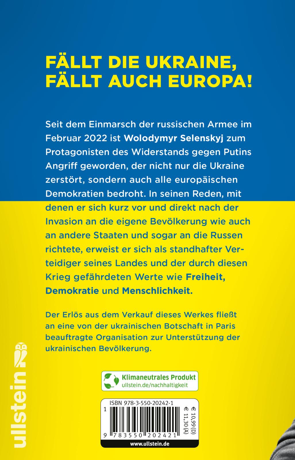 Wolodymyr Selenskyj ist zum Protagonisten des Widerstands gegen den Einmarsch der russischen Armee im Februar 2022 geworden. Putins Angriff zerstört dabei nicht nur die Ukraine, sondern bedroht auch alle europäischen Demokratien. In seinen Reden, mit denen sich Selenskyj kurz vor und direkt nach der Invasion an die eigene Bevölkerung wie auch an andere Staaten und selbst an die Russen richtete, erweist er sich als standhafter Verteidiger seines Landes und der durch diesen Krieg gefährdeten Werte wie Freiheit, Demokratie und Menschlichkeit.
