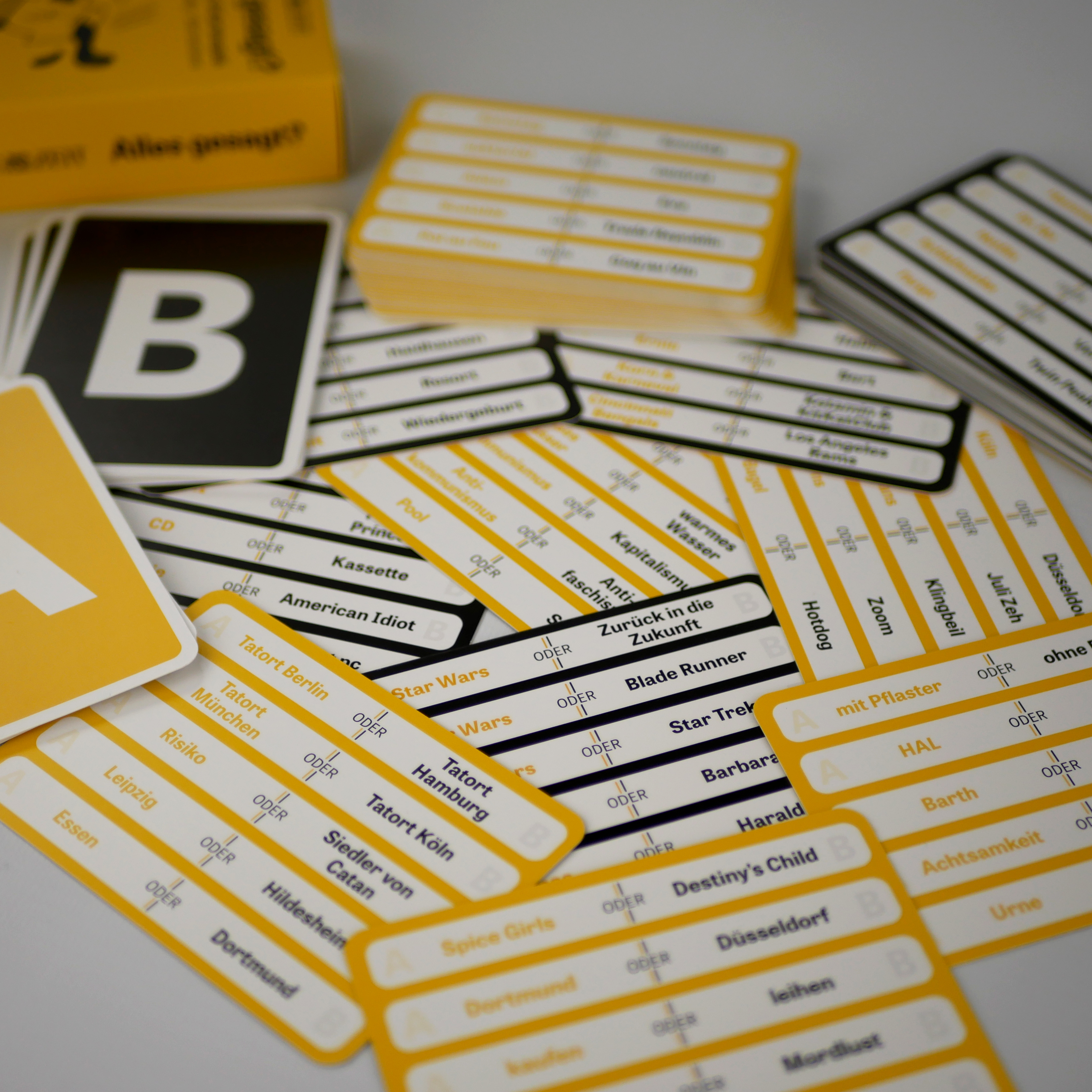 | Schlagworte | A oder B • DIE ZEIT • Entscheiden • Entscheidung • entweder oder • Erwachsene • Fragen • Geschenk • Gesellschaft • Kartenspiel • Kennenlernen • Löschen • Podcast • Spieleabend • würdest du lieber |