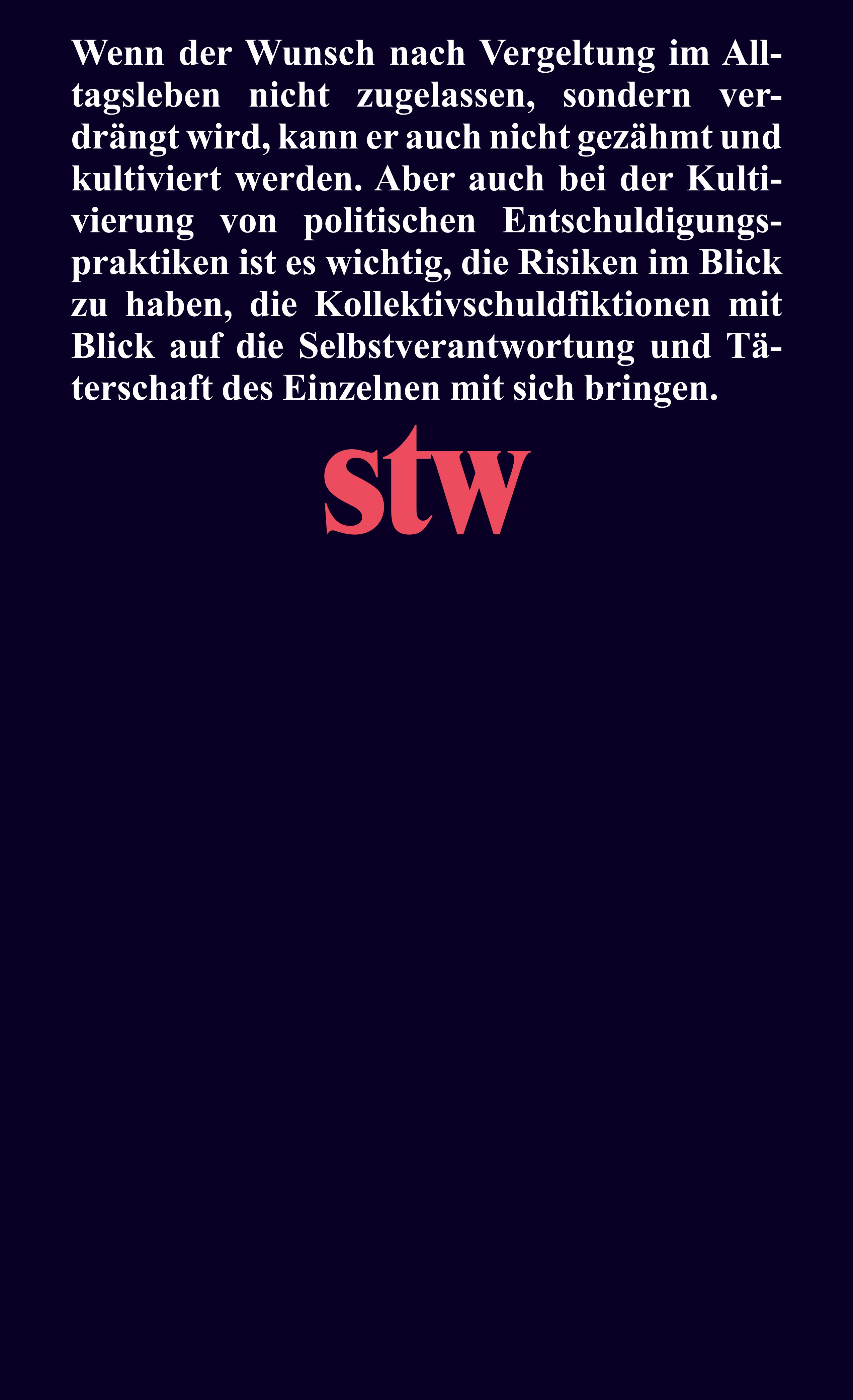 Anders als Nietzsche dachte, ist die Schuld nicht aus dem modernen Leben verschwunden, sondern erobert zunehmend den politischen Raum. Schuldbekenntnisse sind heute fester Bestandteil nationaler wie internationaler Politik. Maria-Sibylla Lotter hinterfragt die kulturelle Bedeutung der neuen Schuldpraxis und unterscheidet die politische Bedeutung von Schuldbekenntnissen von ihrer moralischen und rechtlichen. Wie Praktiken der Ausrede und der Rache dienen auch Schuldbekenntnisse der Wiederherstellung gestörter Respektsbeziehungen unter Gleichen. Aufgrund ihrer Anfälligkeit für moralistische Missverständnisse können sie aber auch eine destruktive Eigendynamik entwickeln.