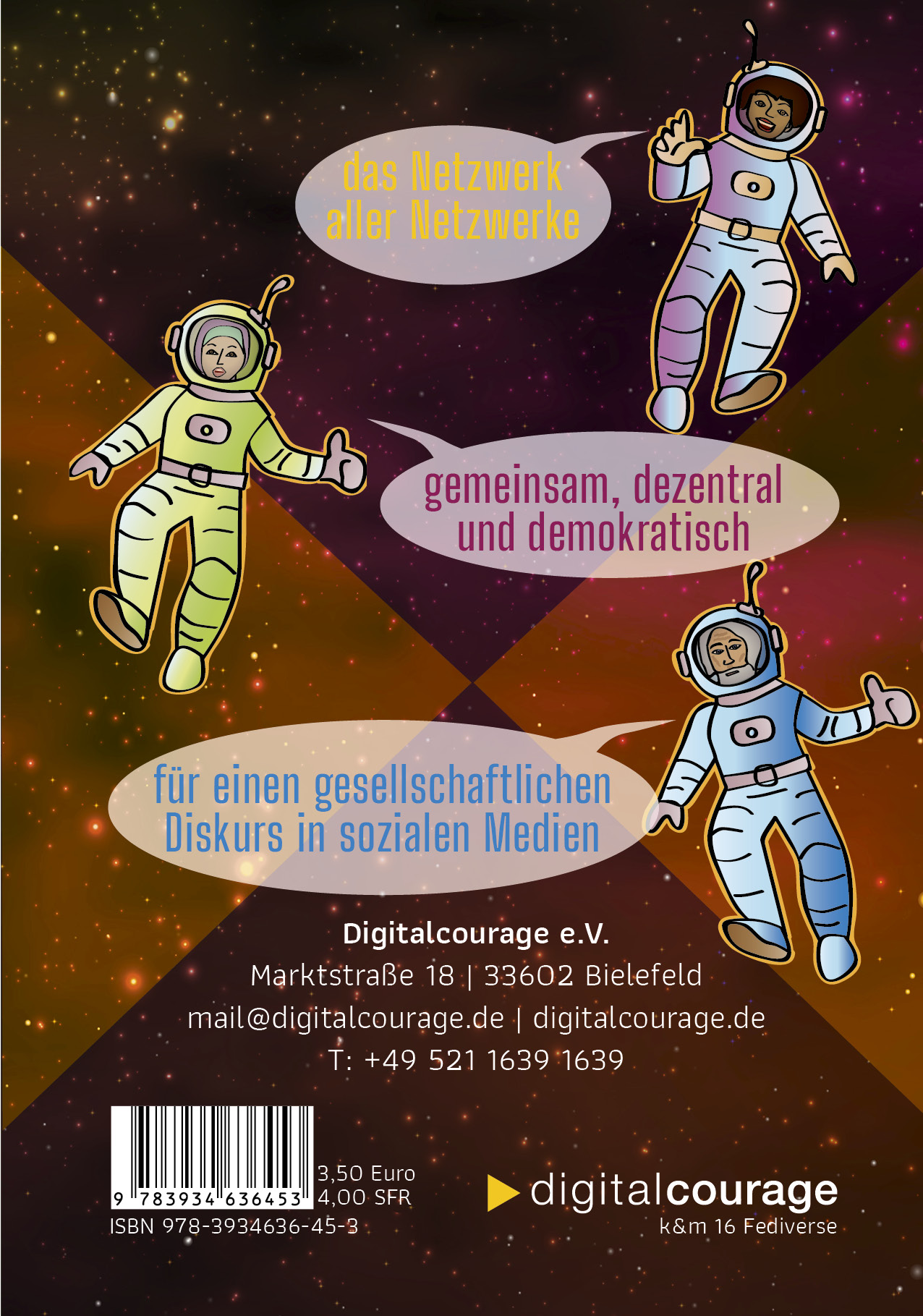 | Schlagworte | Achtsamkeit • Activity Pub • Algoritmen • Apps • Barrierefreiheit • Bedürfnisse • Besonnenheit • Bildbeschreibung • Datenauskunft • Datenerhebung • Datenschutz • Datenweitergabe • einvernehmlich • Erwachsenenbildung • Fake • Fediverse • Freiheit • Freundlichkeit • Friendica • Gerüchte • Handy • Hoax • Höflichkeit • Hubzilla • Ironie • Mastodon • Mobilgeräte • Peertube • Pixelfed • Plattformeffekt • Plattformneutralität • privacy • Privatheit • Privatsphäre • Punktesammler • Quellen • scheinbare Objektivität • sensible Daten • Shitstorm • Sicherheit • Smalltalk • Smartphone • Solidarisierung • Solidarität • Übereinkünfte • Verarbeitung komplexer Datenmengen • Vertrauen |