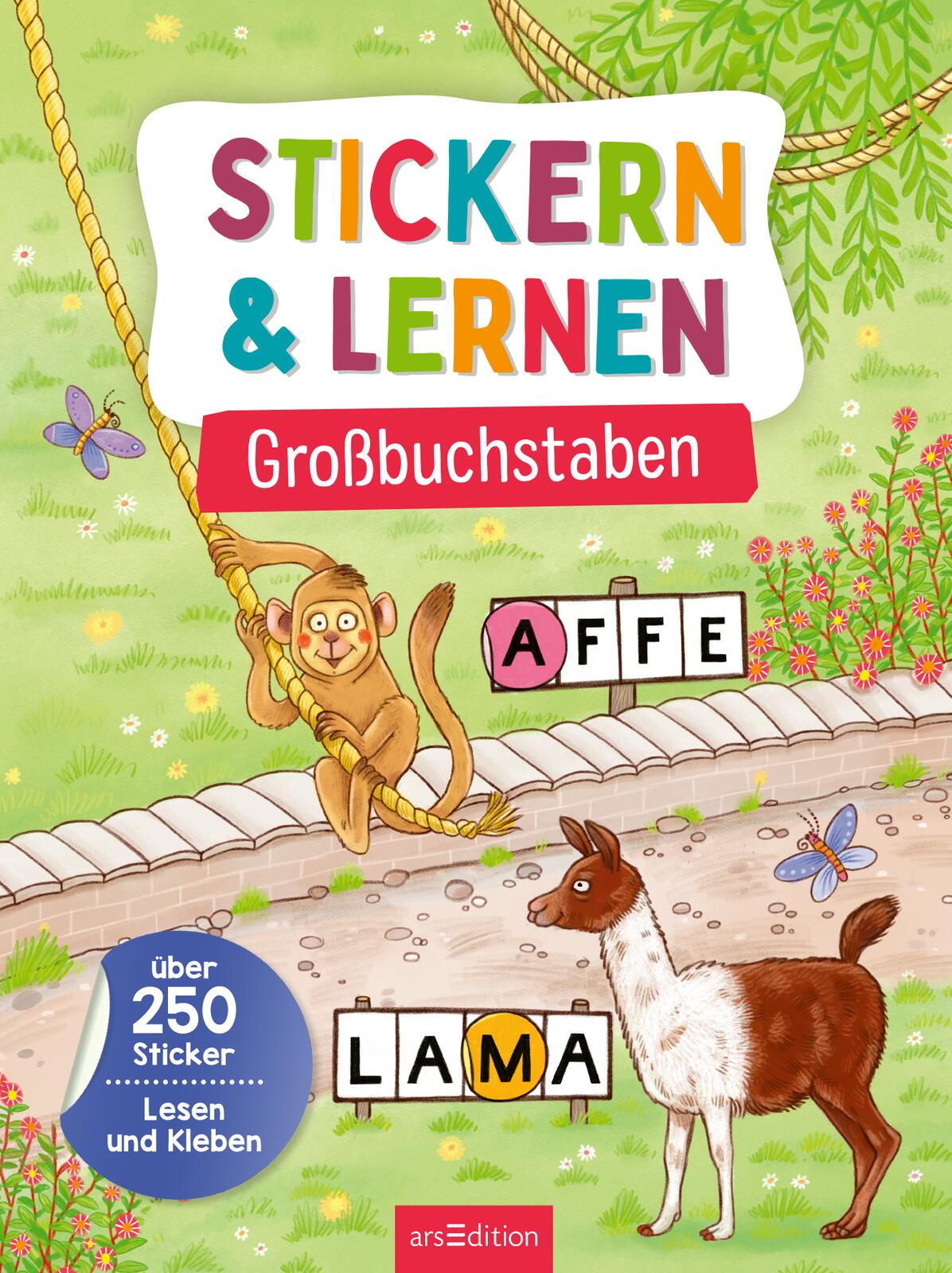 Hier ist Stickerspaß garantiert, und ganz wie von selbst lernen Kinder ab 5 Jahren dabei spielend leicht erste Großbuchstaben. Auf den doppelseitigen Szenen gibt jede Menge zu entdecken und erste Wörter zu lesen. Mit Stickern werden fehlende Großbuchstaben ergänzt und passende Elemente dazugeklebt, so bleibt neben dem Lernen viel Raum für kreative Gestaltung.