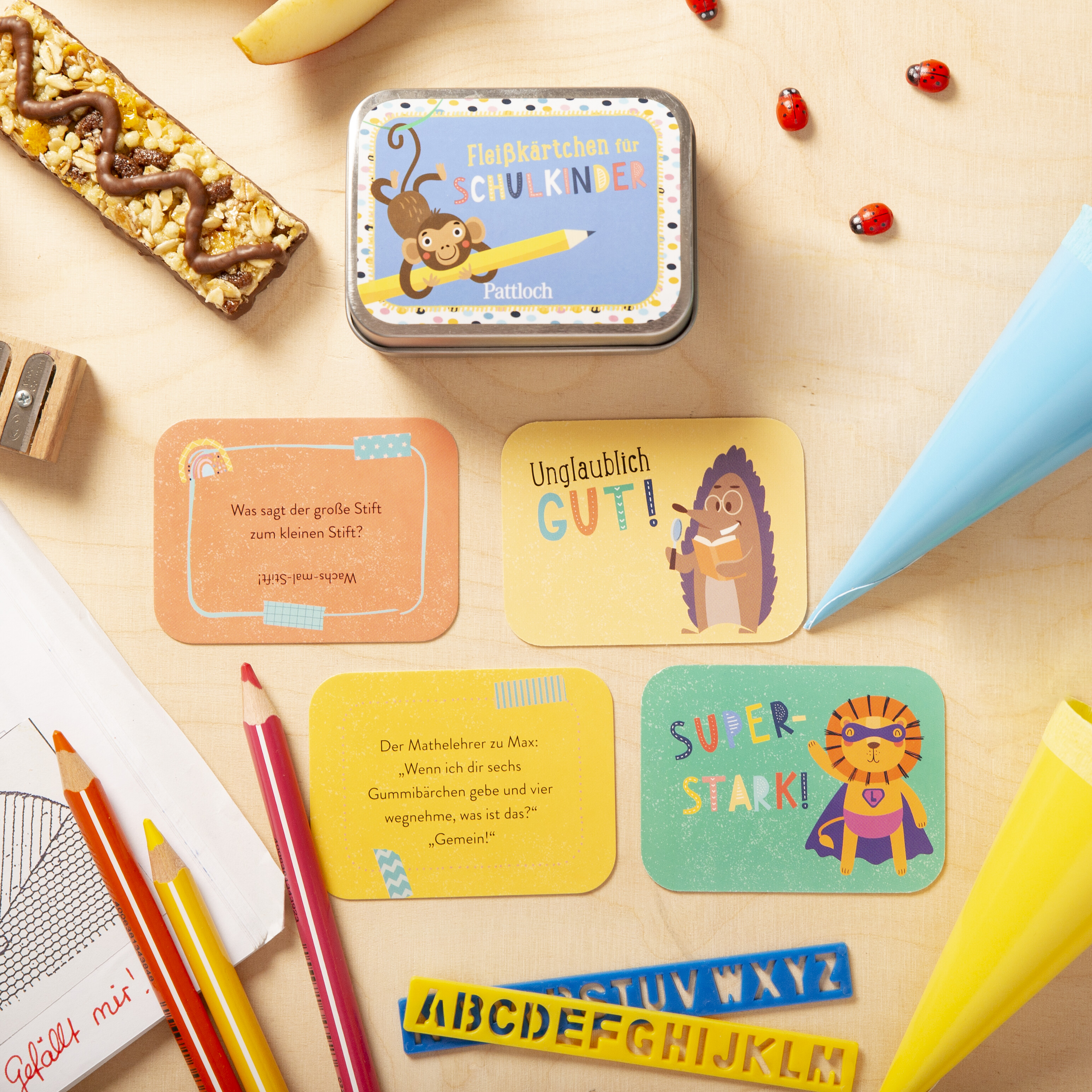 - Zusätzliches Extra: Jedes Lobkärtchen mit einem kurzen Witz auf der Rückseite