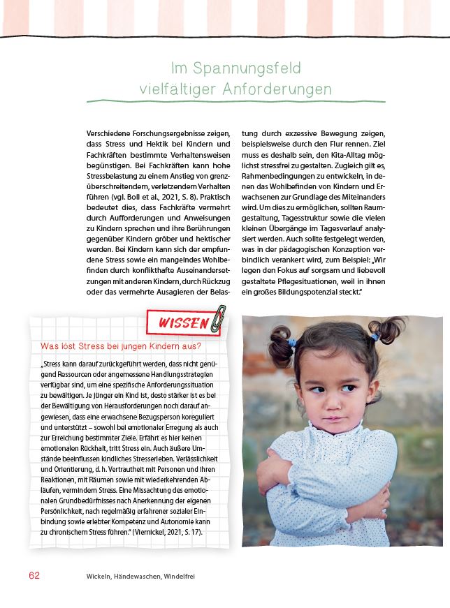 Doch wie gelingen Wickeln & Co achtsam und responsiv? Wie wird aus einem Sanitärraum ein Bildungs-ort? Wie lässt sich beziehungsvolle Pflege gut und nachhaltig in den Tagesablauf integrieren? Und wo ha-ben die Wünsche der Eltern ihren Platz?