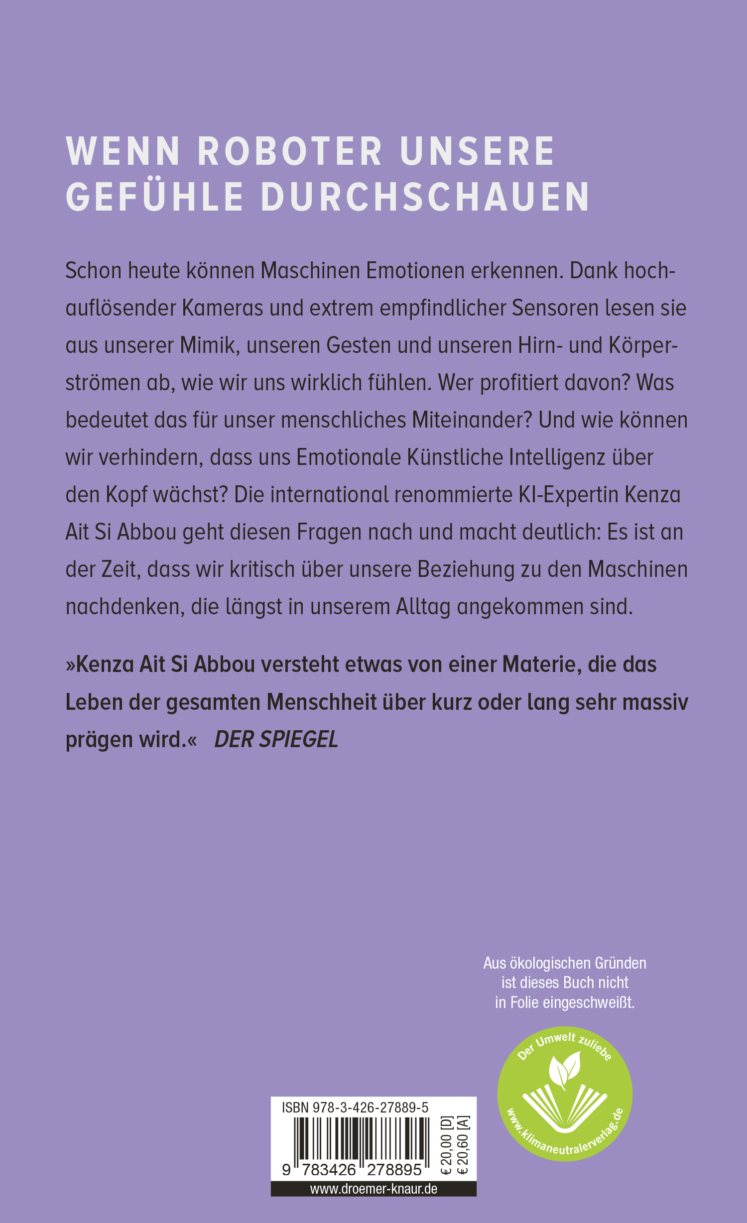 Roboter haben doch keine Gefühle, oder? - Die weltweit renommierte Robotik-Expertin und Bestseller-Autorin Kenza Ait Si Abbou über die wachsende Bedeutung und den Einfluss von Künstlicher Intelligenz bei der Erkennung und Nutzung menschlicher Emotionen - ein ebenso aktuelles wie brisantes Sachbuch.