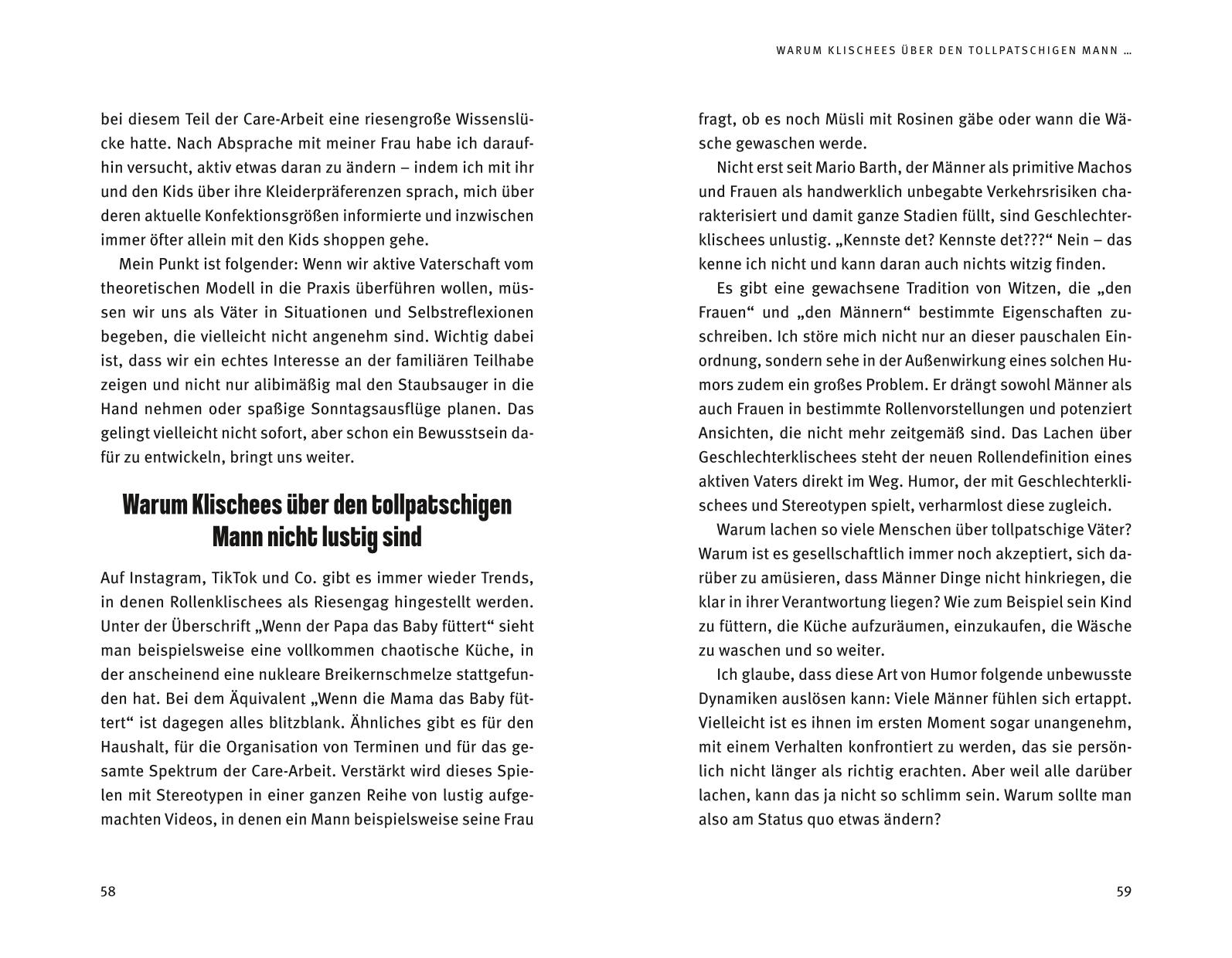 | Schlagworte | Arbeit von Eltern • Care-Arbeit • Elternzeit • gleichberechtigte Erziehung • Gleichberechtigung in der Familie • GU • Kindererziehung • Mental Load • moderne Rollenbilder • ratgeber kindererziehung • Rollenverteilung • Schwangerschaftsbuch für Männer • Vaterrolle • Vaterschaft • Vater werden • werdender Vater • zeitgemäß erziehen |