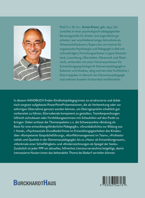 Prof. Dr. Armin Krenz, geb. 1952,hat zunächst in einer psychologisch-pädagogischen Beratungsstelle für Kinder und Jugendliche gearbeitet. Anschließend war er einige Jahrzehnte als Wissenschaftsdozent/Supervisor am Institut für angewandte Psychologie und Pädagogik in Kiel mit Lehraufträgen/Forschungsarbeiten in ganz Deutschland, Luxemburg, Oberitalien, Dänemark und Österreich tätig, verbunden mit einer Honorarprofessur für Entwicklungspsychologie & Elementarpädagogik in Bukarest und Moskau. Er hat viele Fachbücher/Elternratgeber im Bereich der Elementarpädagogik und mehrere hundert Fachartikel veröffentlicht.