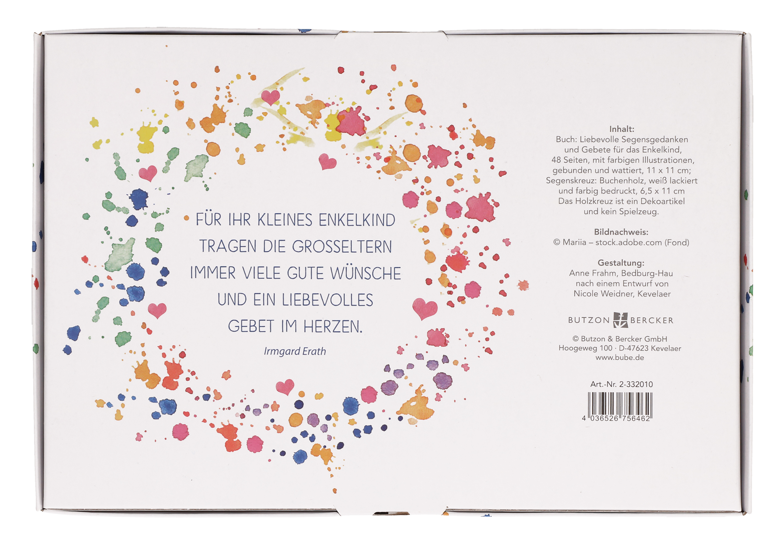- Geschenkset mit Buch und Kreuz- Gute Gedanken und liebe Wünsche für das Enkelkind- Kindergebete für das gemeinsame Beten mit Oma und Opa