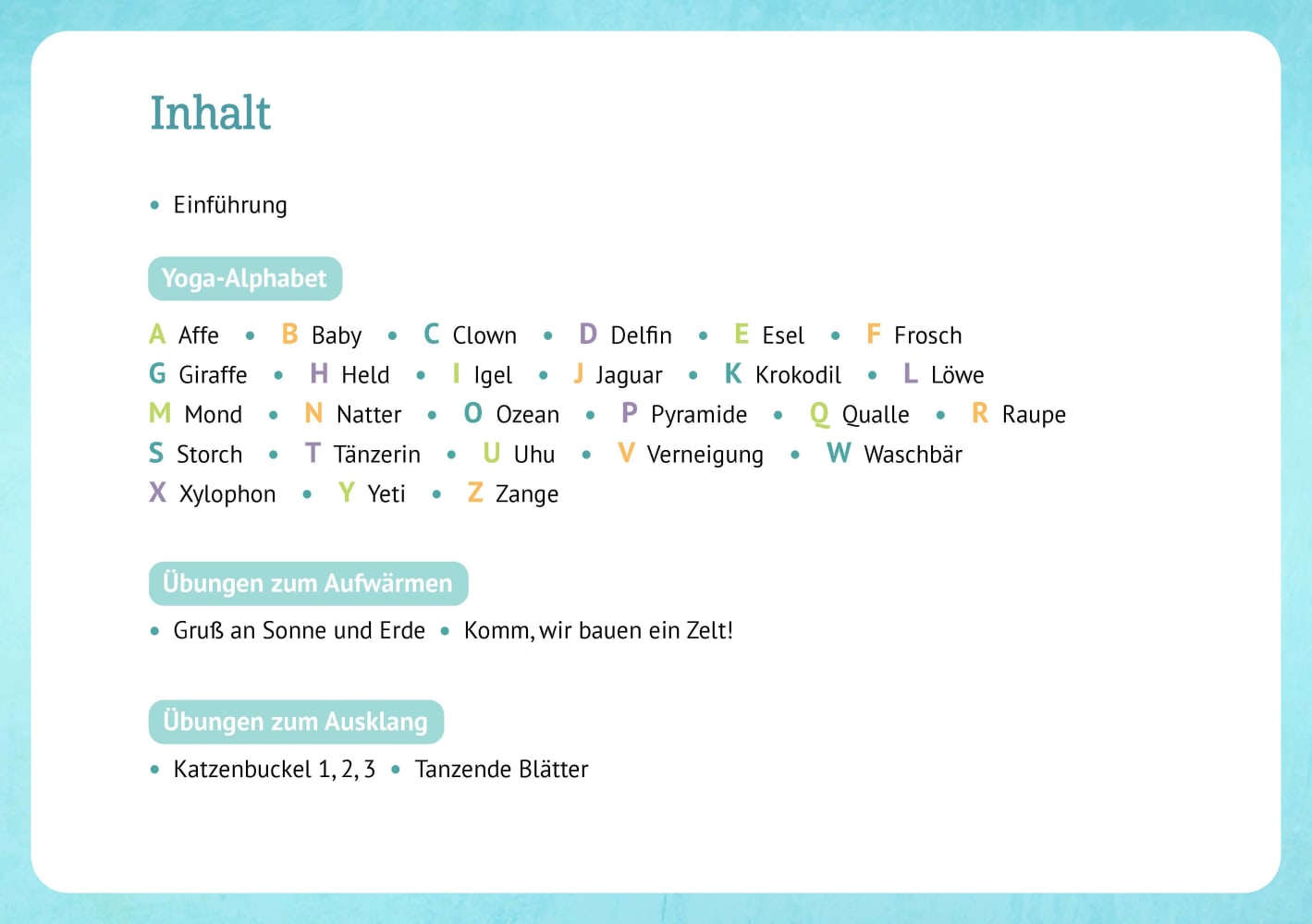 Zu jedem Buchstaben die passende Kinderyoga-Übung