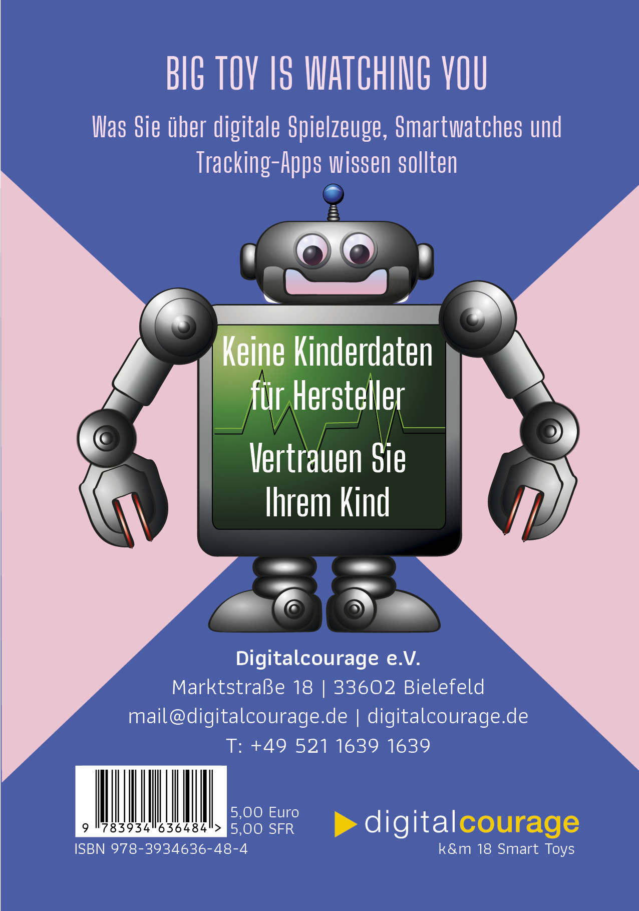 | Schlagworte | Alexa • Anki Inc. • Apps • Arduino • aufmerksame Begleitung • Babyphone • Bedürfnisse • BigBrotherAward • Bundesnetzagentur • Cloud • CloudPets • CogniToys Dino • Cozmo • Datenindustrie • Datenschutz • Datenschutzgrundverordnung • Digitales Kinderzimmer • Dinosurier • Drohnen • DSGVO • Elemental Path • Eltern • Eltern-App • Eltern-Kind-Beziehung • elternsorgen • Erwägungsgrund 38 der DSGVO • Erziehungsberechtigte • Fitnessarmband • Freiheit • Furby Connect • Genesis • Gesichtserkennungssoftware • GPS-Tracker • Handy • Hasbro • Helikoptereltern • Hello Barbie • IBM • Infrarotsensorik • Instagram • i-Que-Roboter • Jugendschutzfilter • Käfig • Keine Chance für Entführer • ki-basierten • Kinderdaten • Kinder-Smartwatches • Kindertracking • Kindeswohlgefährdung • Künstliche Intelligenz • Kuscheltiere • Lauschendes Spielzeug • Mattel • Mobilgeräte • Mündigkeit • My Friend Cayla • Overblocking • Parental Security System • Persönlichkeits- oder Nutzerprofile • privacy • Privatsphäre • Roboter • Schutzengel am Handgelenk • Screen Teens • sensible Daten • Sicherheit • Sicherheitsleck • Siri • smarte Spielzeuge • Smartphone • Smart Toys • SMA Watch-M2 • Software • Solidarität • SOS-Knöpfe • Spracherkennungssoftware • sprechende Puppe • TikTok • Toniebox • Toytalk • Tracking • Überwachungssensorik • UN-Kinderrechtskonvention • Verarbeitung komplexer Datenmengen • Vertrauen • Wanze • Watson |