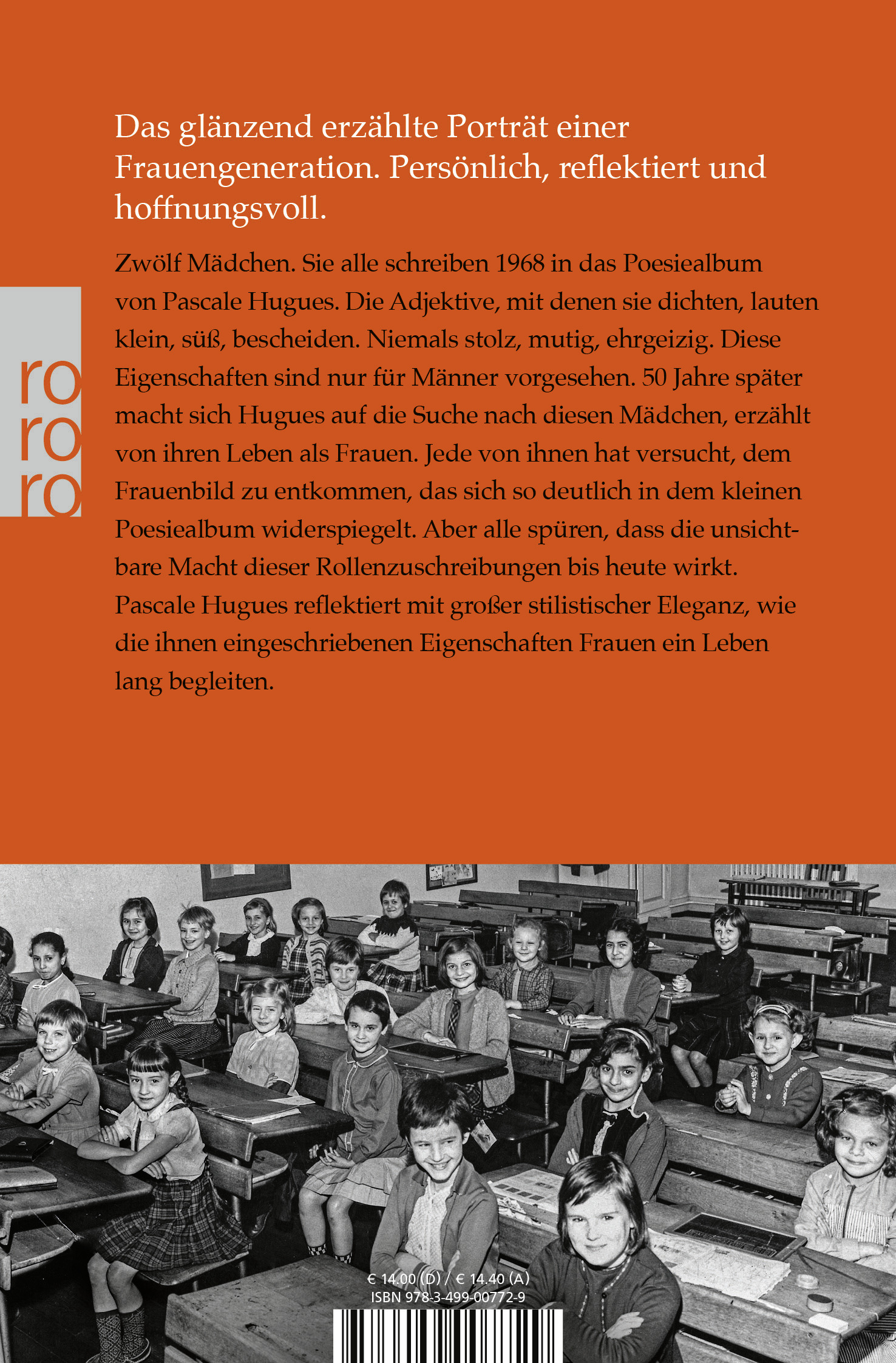 In Mädchenschule begibt sich Bestsellerautorin Pascale Hugues auf eine faszinierende Spurensuche. Ausgehend von den Einträgen in ihrem Poesiealbum aus dem Jahr 1968 zeichnet sie die Lebenswege von zwölf Mädchen nach, die damals mit Adjektiven wie "klein", "süß" und "bescheiden" beschrieben wurden - niemals aber als "stolz", "mutig" oder "ehrgeizig".