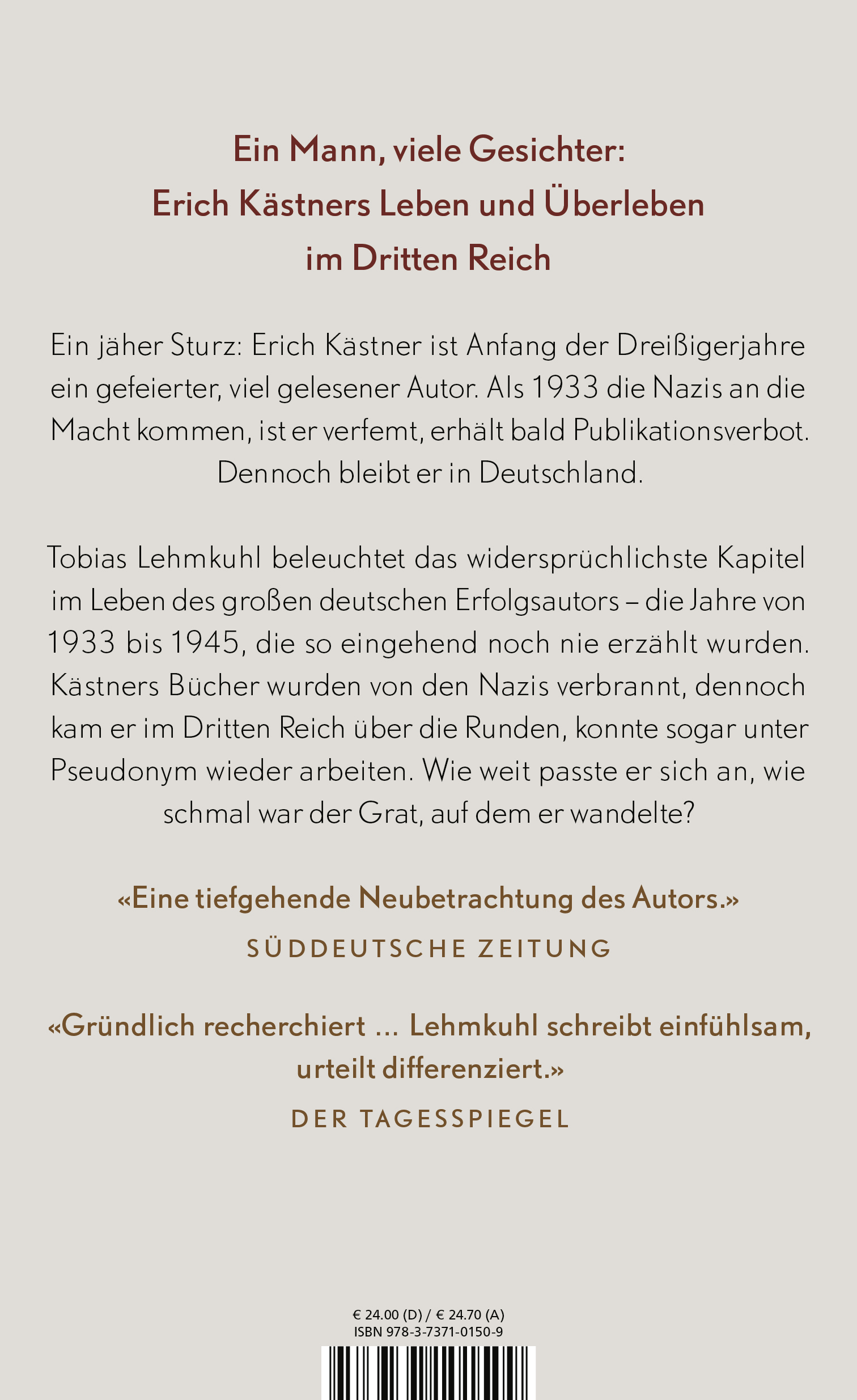 Tobias Lehmkuhl beleuchtet dieses Kapitel im Leben des großen deutschen Erfolgsautors. Wir begleiten Kästner bei seinen Streifzügen durch die Stadt, folgen seinem publizistischen Maskenspiel – und lernen dabei den Moralisten, Verseschmied und Schöpfer zeitlos-populärer Kinderbücher und Romane noch einmal neu und anders kennen.