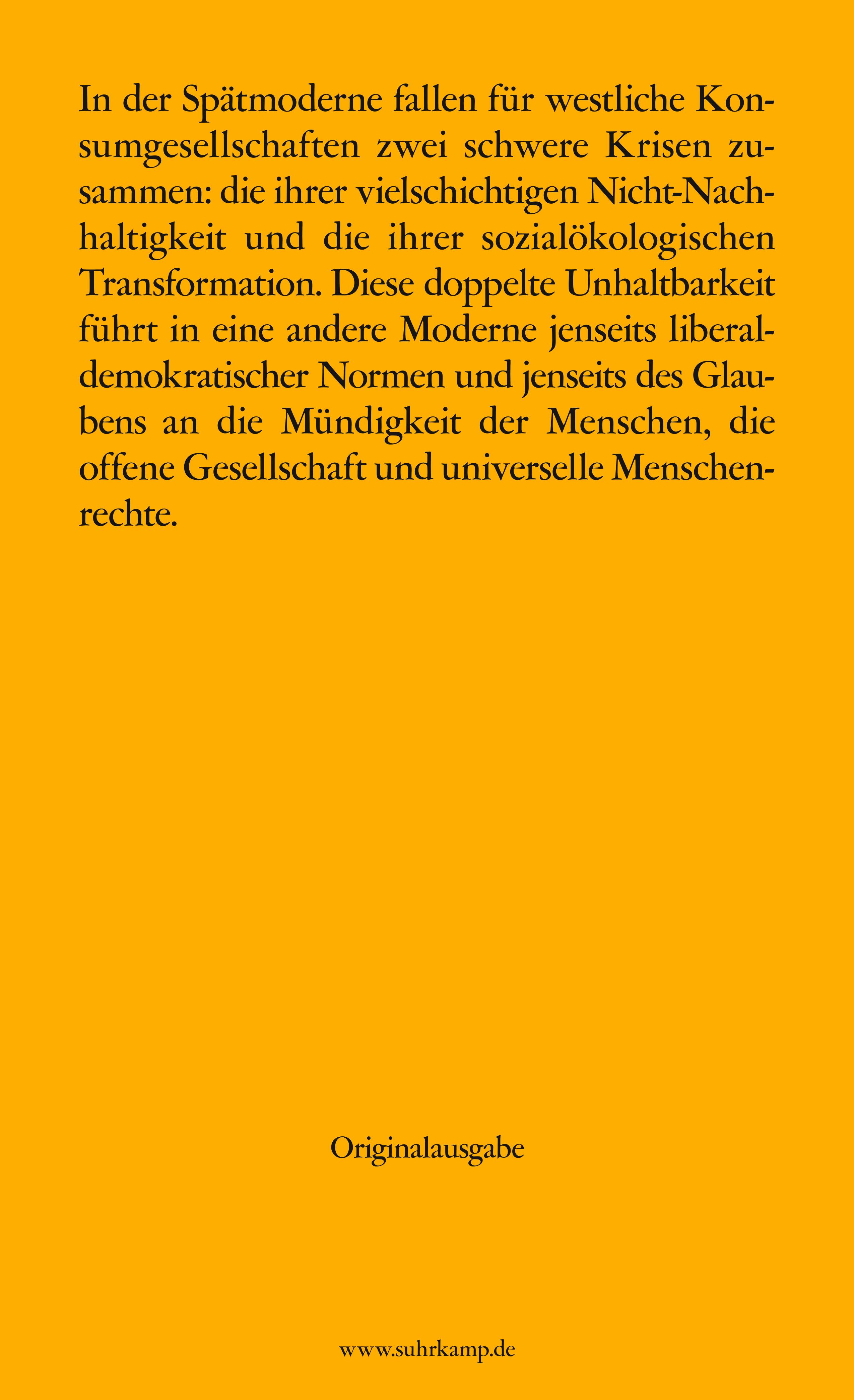 | Schlagworte | aktuelles Buch • Anpassung • bücher neuerscheinungen • Demokratie • Digitalisierung • edition suhrkamp 2808 • ES 2808 • ES2808 • Green New Deal • Klimawandel • Konflikt • Krise • letzte Generation • Neuerscheinungen • neues Buch • Ökologische Wende • Pandemie • Polarisierung • Populismus • Postdemokratie • Spaltung • Zeitdiagnose • Zeitenwende |