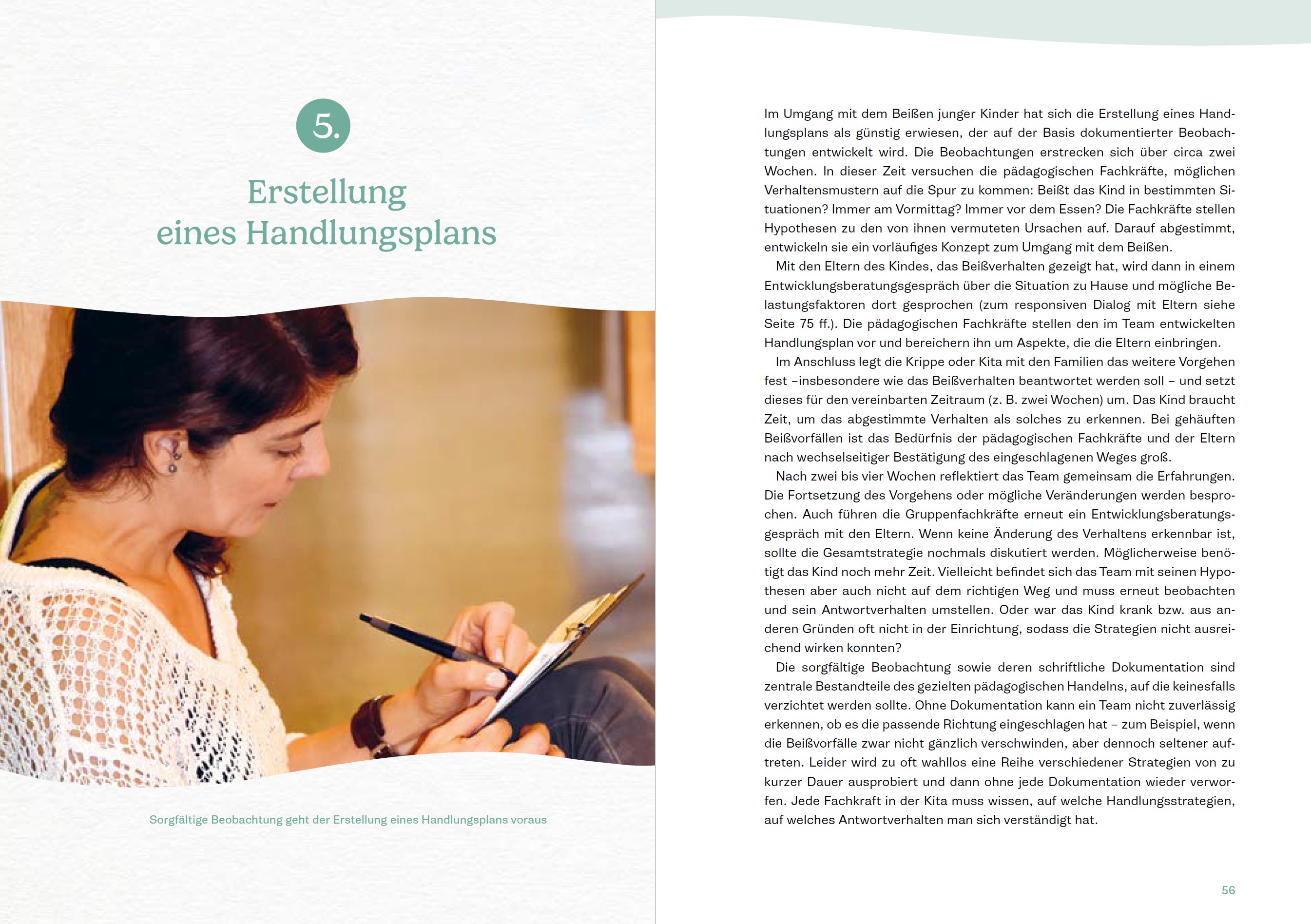 Im Buch werden vielfältige Ursachen für das Beißen aufgezeigt und achtsame und responsive Strategien im Umgang damit vorgestellt, die alle Beteiligten in den Blick nehmen: Kinder, Eltern, pädagogische Fachkräfte, Leitung und Träger.