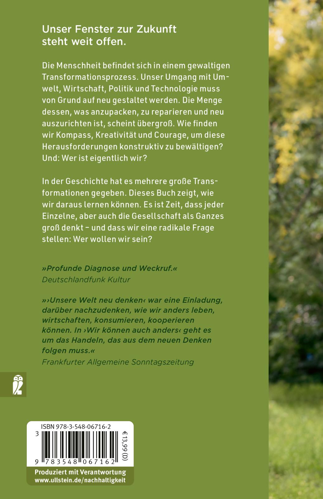| Schlagworte | Corona • Debattenbuch • Demokratie • Digitalisierung • Earth Overshoot Day • Energiekrise • Fortschritt • Fridays For Future • Gas • Gesellschaft • Globalisierung • Glücksforschung • Klimabuch • Klimakatastrophe • Klimakrise • Klimaziel • Konsum • Migration • Mitbestimmung • Neubauer • neue Sachbücher • Ölpreis • Resilienz • Strom • System • Technologie • Thunberg • Transformation • Transformationswissenschaft • Umwälzung • Umwelt • Vermögen • Wachstum • Wettbewerb • Wirtschaft • Wohlstand |
