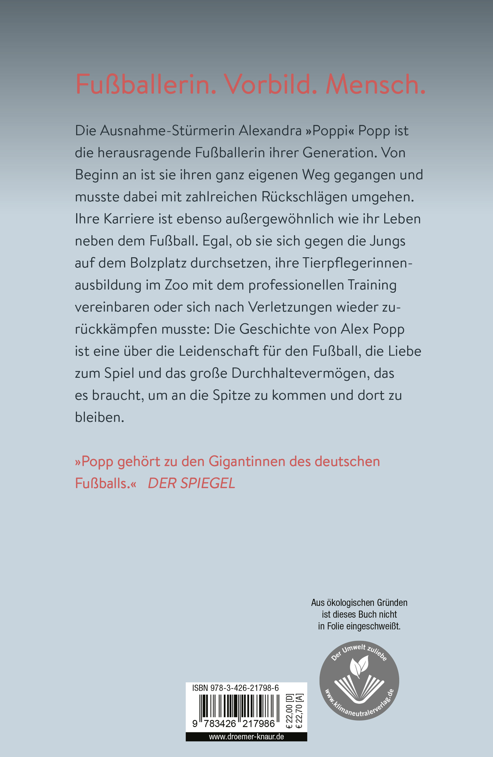 So zeigt die Ausnahme-Stürmerin, dass es ihn noch gibt, den Fußball, der nicht nur mit Geld, sondern mit Leidenschaft für das schöne Spiel zu tun hat. In ihrer ehrlichen und authentischen Autobiografie gibt sie intime Einblicke in ihre Karriere, blickt hinter die Kulissen des Profifußballs und erzählt von ihrem Leben abseits des Rasens. In diesem Buch lernen wir nicht nur die Fußballerin, sondern auch den Menschen Alex Popp kennen - eine warme und sympathische Persönlichkeit voller Liebe und Engagement für Tiere, ihre Familie und Freunde und ihren Sport.