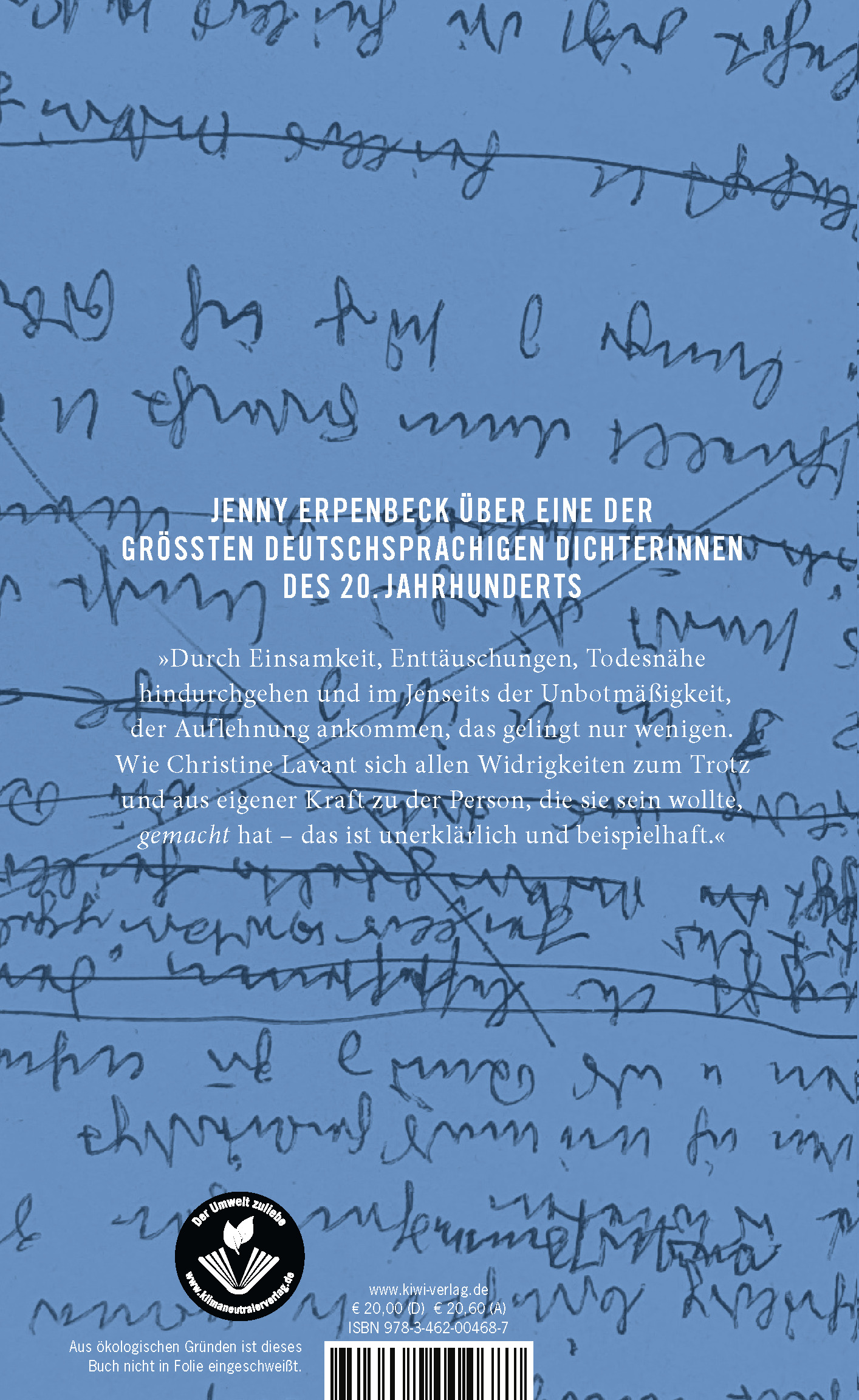 Jenny Erpenbeck lässt uns an ihrer Faszination für Christine Lavant (1915-1973) teilhaben, deren Gedichte sie zum ersten Mal liest, als sie Mitte der Neunziger in Graz lebt. An der Faszination für eine Frau, die sich durch ihre Lesewut, Sensibilität und Klugheit aus dem elenden Dasein, das ihr durch Krankheit und Armut vorgezeichnet war, herausgeschrieben hat. Christine Lavants tiefgründiger Wahrnehmung des eigenen Leidens steht das zornige Fragen nach dem abwesenden Gott gegenüber, ihrem Stolz als Dichterin die Bescheidenheit der persönlichen Existenz, der Einsamkeit einer Außenseiterin ein unbändiger Humor.