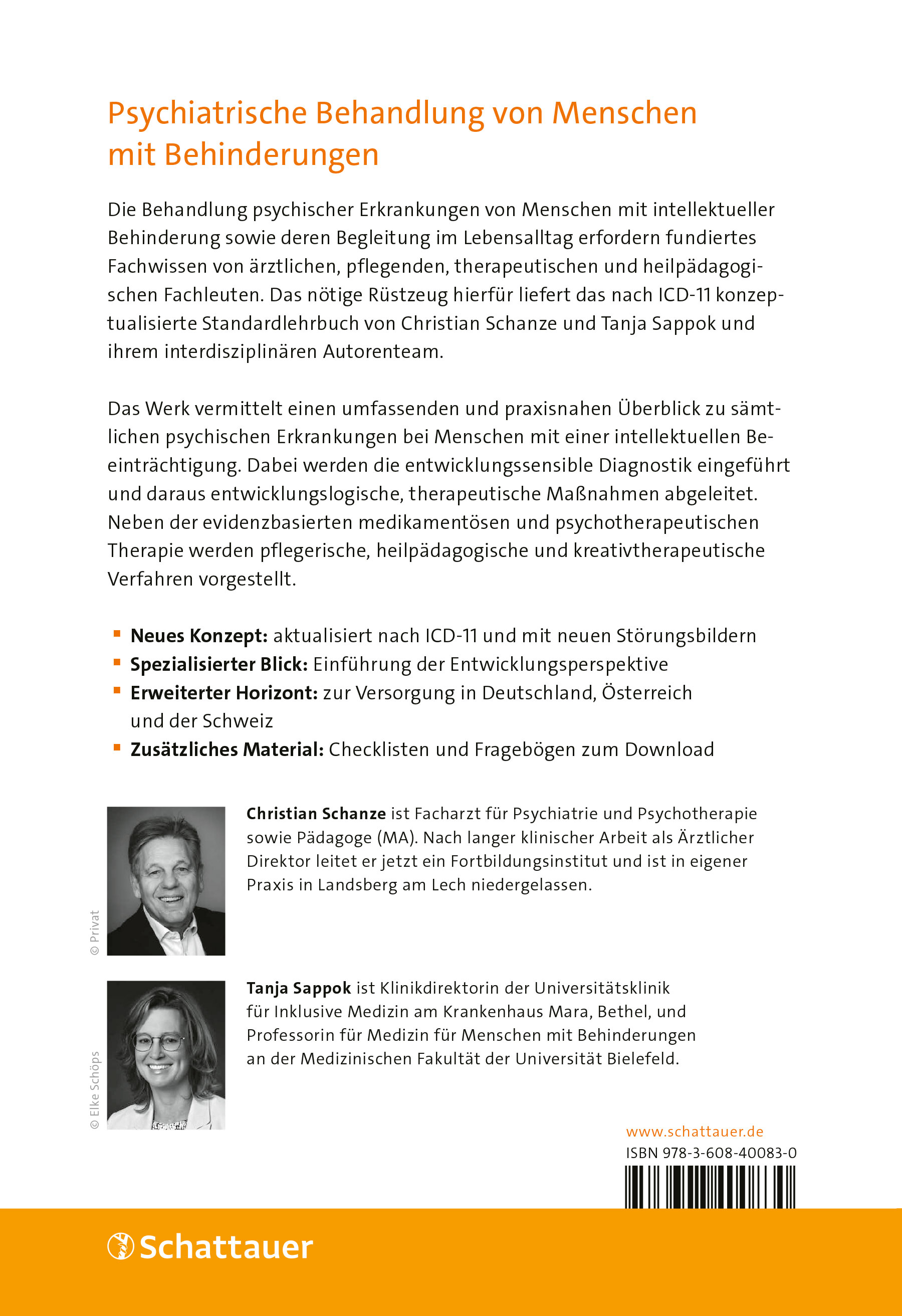 Univ.-Prof. Dr. med. habil. Tanja Sappok ist Direktorin der Universitätsklinik für Inklusive Medizin, Medizin für Menschen mit Behinderungen am Krankenhaus Mara gGmbH, Universitätsklinikum OWL, und Universitätsprofessorin für Psychische Gesundheit bei Menschen mit Behinderungen, Schwerpunkt psychische Gesundheit, an der Fakultät für Medizin der Universität Bielefeld, Deutschland. Klinisch und wissenschaftlich arbeitet sie an diversen Themengebieten rund um die psychische Gesundheit von Menschen mit Störungen der Intelligenzentwicklung, insbesondere Autismus-Spektrum-Störungen, emotionale Entwicklungsstörungen, Verhaltensstörungen und Demenzen. Als Präsidentin a.D. und Vorstandsmitglied der European Association for Mental Health in Intellectual Disability (EAMHID) und Vizepräsidentin der Deutschen Gesellschaft für Seelische Gesundheit bei geistiger Behinderung (DGSGB) organisiert sie nationale und internationale Konferenzen und publiziert zahlreicher Bücher und wissenschaftlicher Artikel. Sie lehrt an der Medizinischen Fakultät der Universität Bielefeld und setzt sich mit ihrer Arbeit für die Verbesserung der medizinischen Versorgung von Menschen mit Störungen der Intelligenzentwicklung ein.
