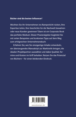 Corporate Books sind weit mehr als Unternehmenspublikationen. Die Autoren verstehen darunter alle Bücher, die auf Wunsch und im Interesse eines Unternehmers oder eines Unternehmens publiziert werden, unabhängig von Thema, Genre und Autor, von Finanzierung, Produktion, Verlag und Vertriebsweg. Auch die Unternehmensgröße spielt keine Rolle, denn sie reicht vom Freiberufler über Selfpublisher bis zum Global Player. Das Gemeinsame: Von all diesen Initiatoren werden Corporate Books als eine Investition betrachtet. Letzten Endes geht es darum, die Deutungshoheit über sein Unternehmen oder seine Ansichten zu behalten und nicht an 'Externe' zu verlieren. Corporate Books sind also das perfekte Medium, um Unternehmen ins Rampenlicht zu rücken, Expertisen zu teilen, Geschichten für die Nachwelt zu bewahren oder neue Kunden zu gewinnen.Dieser Praxisratgeber bietet zahlreiche Beispiele und konkrete Tipps, um in diesem Sinne bleibende Eindrücke zu kreieren. Der potenzielle Autor erfährt, wie er einzigartige Inhalte entwickelt, ein überzeugendes Manuskript zur Marktreife bringt, die idealen Projektpartner oder Co-Writer auswählt und dabei Qualität, Termine und Kosten im Griff behält.