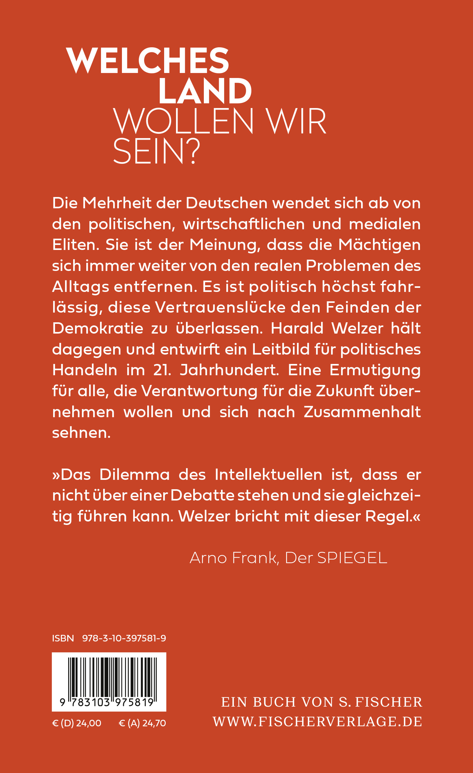 Harald Welzer, geboren 1958, ist Sozialpsychologe. Er ist Direktor von FUTURZWEI. Stiftung Zukunftsfähigkeit und des Norbert-Elias-Centers für Transformationsdesign an der Europa-Universität Flensburg. In den Fischer Verlagen sind von ihm u. a. erschienen: »Täter. Wie aus ganz normalen Menschen Massenmörder werden«, »Klimakriege. Wofür im 21. Jahrhundert getötet wird«, »Alles könnte anders sein. Eine Gesellschaftsutopie für freie Menschen«, »Nachruf auf mich selbst. Die Kultur des Aufhörens« und – gemeinsam mit Richard David Precht – »Die vierte Gewalt. Wie Mehrheitsmeinung gemacht wird, auch wenn sie keine ist«. Seine Bücher sind in 21 Ländern erschienen.