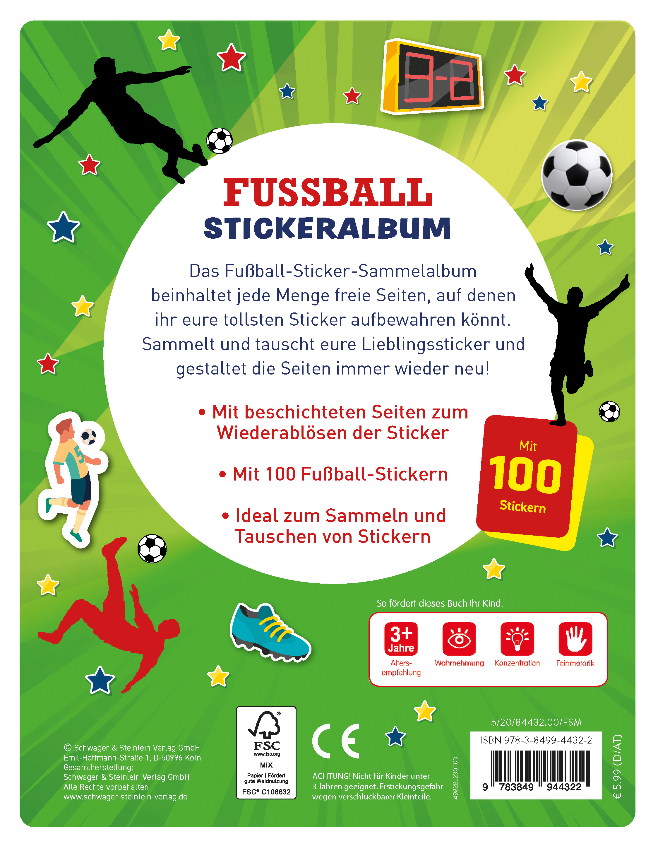 | Schlagworte | Beschäftigung Kindergarten • für Kindergartenkind • Fußball • Fußballs-Sticker • _Fußball-Stickeralbum • Fußball-Stickeralbum • Fußball-Stickeralbum leer • Geburtstagsgeschenk • geschenk für enkel • Geschenk für Kindergartenkinder • Geschenk Schultüte • Hobby Grundschule • Hobby Kindergarten • Kinder ab 3 Jahre • Kinderbeschäftigung • Leeralbum • Mitgebsel • Sammeln • Schwager & Steinlein Verlag • Soccer • Sticker Album Junge • Sticker-Album leer • Sticker Album Mädchen • Stickeralbum wie früher • Sticker-Aufbewahrung • Stickerbilder • Stickern • Sticker-Sammelalbum • Sticker tauschen • Tauschen • unter 10€ • unter 10EUR • unter 10 Euro • Weihnachtsgeschenk • wiederablösbare Sticker |