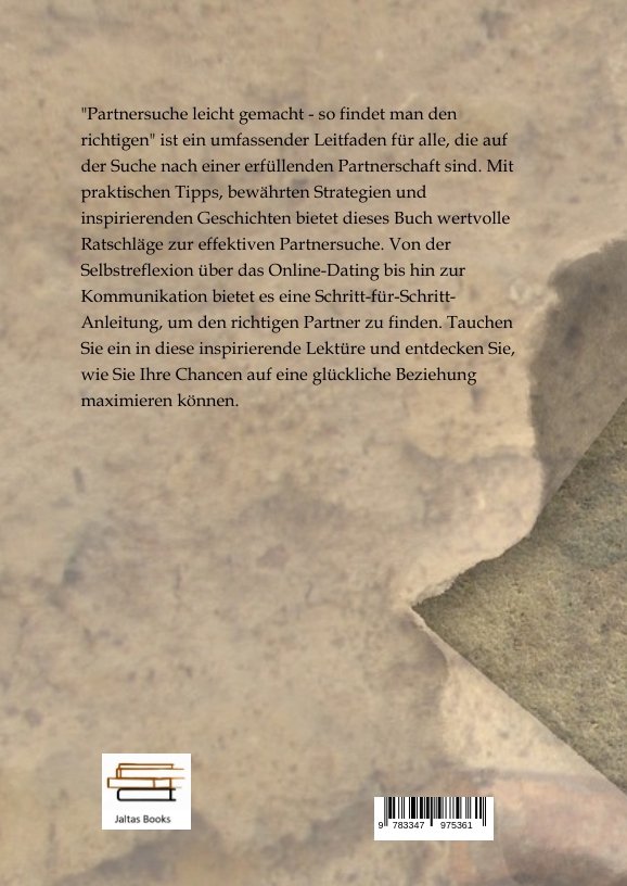 "Partnersuche leicht gemacht - so findet man den richtigen" ist ein umfassender Leitfaden für alle, die auf der Suche nach einer erfüllenden Partnerschaft sind. Mit praktischen Tipps, bewährten Strategien und inspirierenden Geschichten bietet dieses Buch wertvolle Ratschläge zur effektiven Partnersuche. Von der Selbstreflexion über das Online-Dating bis hin zur Kommunikation bietet es eine Schritt-für-Schritt-Anleitung, um den richtigen Partner zu finden. Tauchen Sie ein in diese inspirierende Lektüre und entdecken Sie, wie Sie Ihre Chancen auf eine glückliche Beziehung maximieren können.