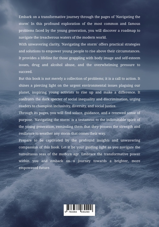 Embark on a transformative journey through the pages of 'Navigating the storm' In this profound exploration of the most common and famous problems faced by the young generation, you will discover a roadmap to navigate the treacherous waters of the modern world.With unwavering clarity, 'Navigating the storm' offers practical strategies and solutions to empower young people to rise above their circumstances. It provides a lifeline for those grappling with body image and self-esteem issues, drug and alcohol abuse, and the overwhelming pressure to succeed.But this book is not merely a collection of problems; it is a call to action. It shines a piercing light on the urgent environmental issues plaguing our planet, inspiring young activists to rise up and make a difference. It confronts the dark specter of social inequality and discrimination, urging readers to champion inclusivity, diversity, and social justice.Through its pages, you will find solace, guidance, and a renewed sense of purpose. 'Navigating the storm' is a testament to the indomitable spirit of the young generation, reminding them that they possess the strength and resilience to weather any storm that comes their way.Prepare to be captivated by the profound insights and unwavering compassion of this book. Let it be your guiding light as you navigate the tumultuous seas of the modern age. Embrace the transformative power within you and embark on a journey towards a brighter, more empowered future.