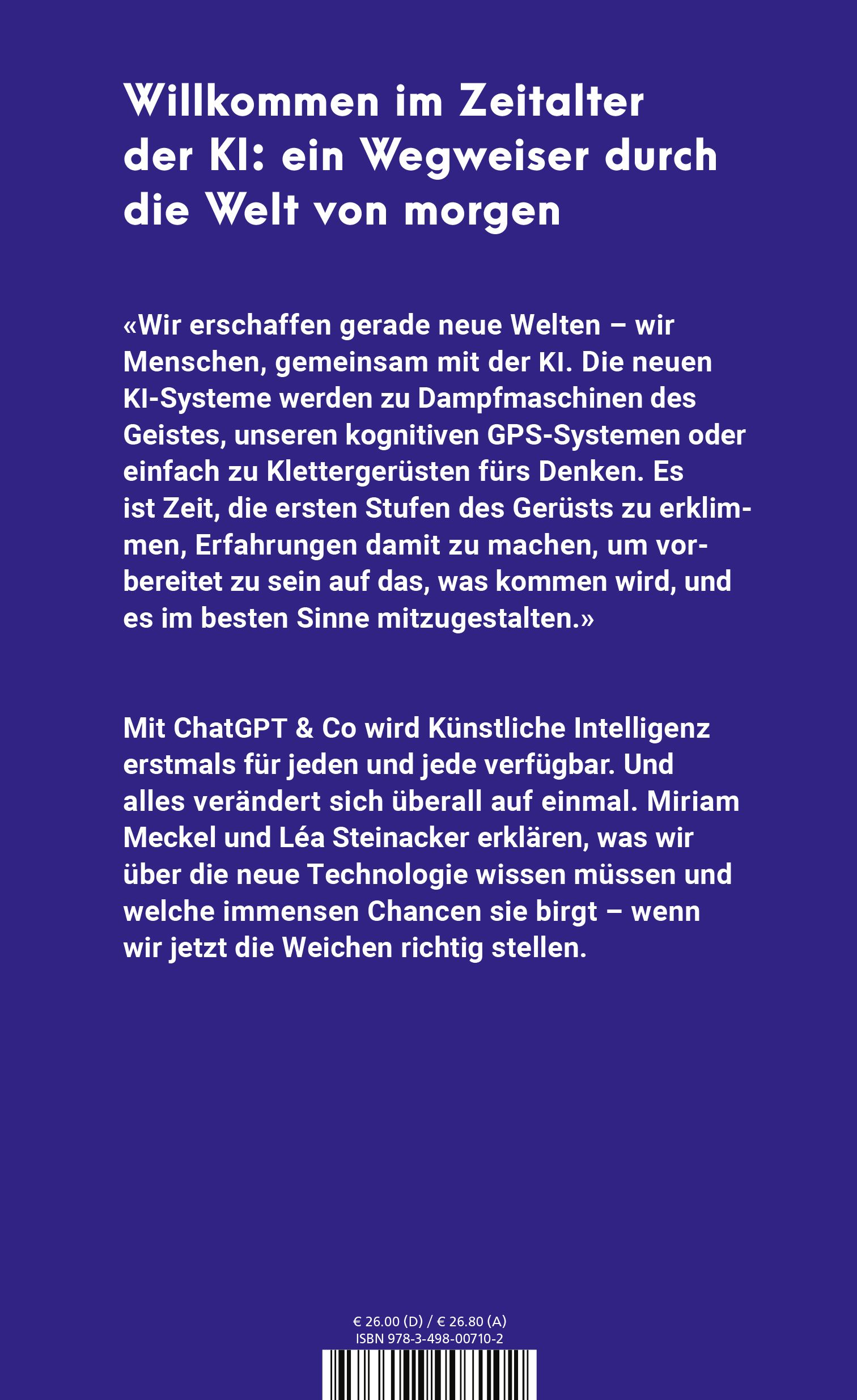 Miriam Meckel und Léa Steinacker zeigen die Chancen auf, die der Schritt über diese Schwelle birgt. Wir müssen nicht fürchten, als Menschen abgeschafft zu werden, denn: Alles, was die KI tut, geht zurück auf die Art und Weise, wie wir mit ihr umgehen. Das heißt aber auch: Wir stehen genau jetzt vor der Aufgabe, ihre Entwicklung in die richtigen Bahnen zu lenken.