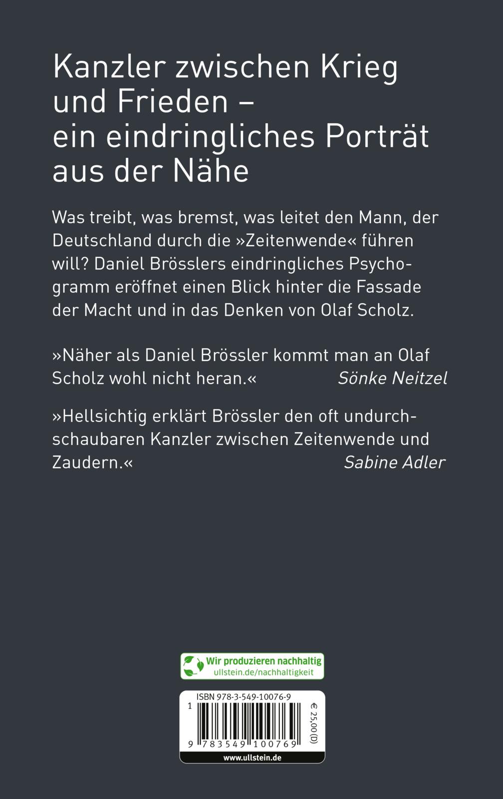 Daniel Brössler, geboren 1969, ist als Leitender Redakteur im Berliner Parlamentsbüro der Süddeutschen Zeitung zuständig für das Kanzleramt. Seit dessen Amtsantritt begleitet er Olaf Scholz auf seinen Reisen und hat vor dem Überfall auf die Ukraine die Besuche des Kanzlers in Washington, Moskau und Kiew aus der Nähe erlebt. Im Juni 2022 gehörte er zur kleinen Reisegruppe des Kanzlers auf der Zugfahrt nach Kiew. Für sein Stück »Schreckliche Neue Welt« über Olaf Scholz und die »Zeitenwende« wurde er 2023 mit dem Theodor-Wolff-Preis ausgezeichnet.