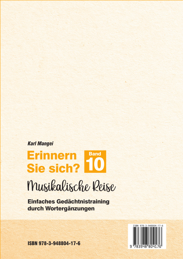 Ob alleine oder in der Gruppe. Die Fragen und Antworten bringen auf unterhaltsame Art und Weise viele Erinnerungen aus der eigenen Lebenserfahrung zurück. Wie immer bei der Reihe „Erinnern Sie sich?“ wird als Antwort ein fehlendes Wort gesucht. Weil die Beantwortung sehr einfach ist, gibt es auch viele Erfolgserlebnisse und damit mehr Spaß und Motivation für neue Aktivitäten.
