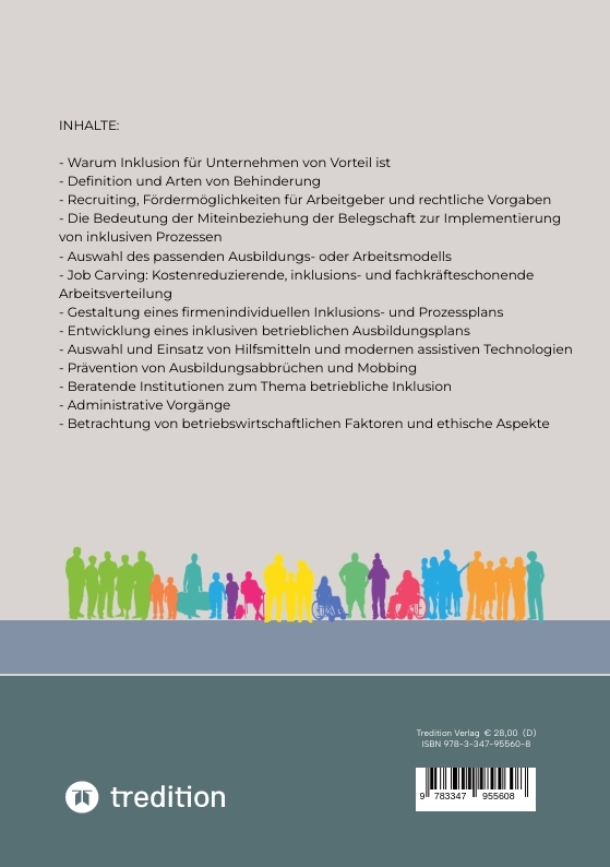 | Schlagworte | 360° praxisfundierte Beratung • Aktion Mensch • Akzeptanzkultur • Arbeit • Arbeitsassistenz • Arbeitsassistenz für Menschen mit Behinderung • Arbeitsmarkt und Inklusion • Arbeitsplätze für Menschen mit Behinderung • Arbeitsplatzgestaltung für Menschen mit Behinderung • Assistive Technologien • Ausbildung für Menschen mit Behinderung • Ausbildungsmodelle für Menschen mit Behinderung • Ausbildungsmöglichkeiten für Menschen mit Behiderung • Barrierefreie Arbeitsumgebung • Barrierefreie Ausbildungsumgebungen • Barrierefreie Kommunikation im Unternehmen • Beate Knickrehm • Behinderten Ausweis • Behinderung der Sinnenorganen • Behinderung in Deutschland • Behinderungsbilder und Berufe • Behinderungsbild gerechetes Ausbildung • Behinderungsbild gerechte Arbeitsplatz • Beratung für Inklusion • Berufsbildung und Inklusion • Berufspädagogik • Berufspädagogik für diverse Lerngruppen • Best Practices für inklusive Unternehmenskultur • Betreuung und Begleitung in der Ausbildung • Betriebliche Inklusionskultur • Betriebliche Inklusionspädagogik • Betriebliche Inklusionsstrategien • Betrieblicher Ausbildungsplan • Betriebspädagogik • Bildungseinrichtungen und Inklusion • Chancengleichheit am Arbeitsplatz • Chancengleichheit im Berufsleben • Das Match-Modell zur beruflichen Inklusion • Das Zwei-Säulen-Modell zur Erreichung inklusiver Verhältnisse • digitale Aufgabeassistenz • Diversity Management • Dr. Henning Schmidt • easy reading • Erfahrungen von Menschen mit Behinderung im Arbeitsleben • Erfahrungsberichte inklusiver Betriebe • Erfolgreiche Inklusionsstrategien • Erfolgreiche Integration von Menschen mit Behinderung • Erfolgsfaktoren für inklusive Teamarbeit • Erfolgsfaktoren inklusiver Ausbildungspläne • Fördermöglichkeiten für Arbeitgeber • Förderung von Inklusion in kleinen Unternehmen • GdB • gemeinsam wachsen • Gestaltung inklusiver Prozesse im Unternehmen • Gestaltung von Barrierefreie Arbeitsplätze • Grad der Behinderung • Grag der Behinderung am Arbeitsplatz • Hilfsmittel und assistive Technologien am Arbeitsplatz • InA.Coach • Inklusion als Wachstumschance • Inklusion am Arbeitsplatz • Inklusion im Bildungsbereich • Inklusion im Mittelstand • Inklusion in der Ausbildung • Inklusion in Unternehmen • Inklusion in verschiedenen Branchen • Inklusionsberatung • Inklusionsfreundlicher Betrieb • Inklusionsmaßnahmen am Arbeitsplatz • Inklusionsmaßnahmen in Betrieben • Inklusionsmodelle in Unternehmen • Inklusionsnetzwerke und -initiativen • Inklusionspädagogik • Inklusionsplan • Inklusionsplan für Unternehmen • Inklusionsteam • Inklusionsteam und Teamarbeit • Inklusionstrainings für Unternehmen • Inklusion und Arbeitsplatzanpassungen • Inklusion und Arbeitssicherheit • Inklusion und betriebliche Gesundheitsförderung • Inklusion und betriebliche Qualitätsstandards • Inklusion und Corporate Culture • Inklusion und Corporate Governance • Inklusion und Corporate Social Responsibility (CSR) • Inklusion und digitale Transformation in Unternehmen • Inklusion und Diversity im Betrieb • Inklusion und Diversity in der Unternehmenskommunikation • Inklusion und Diversity-Training • Inklusion und ethische Geschäftspraktiken • Inklusion und flexible Arbeitsbedingungen • Inklusion und flexible Arbeitszeitmodelle • Inklusion und Fördermöglichkeiten für den Arbeitgeber • Inklusion und Generationenvielfalt am Arbeitsplatz • Inklusion und Gesundheitsmanagement im Unternehmen • Inklusion und globale Unternehmen • Inklusion und Innovation am Arbeitsplatz • Inklusion und interkulturelle Sensibilität • Inklusion und Karriereentwicklung • Inklusion und Mitarbeiterengagement • Inklusion und Mitarbeitermotivation • Inklusion und Mitarbeiterzufriedenheit • Inklusion und Personalentwicklung • Inklusion und Personalmanagement • Inklusion und Personalrekrutierung • Inklusion und psychische Gesundheit am Arbeitsplatz • Inklusion und soziale Integration am Arbeitsplatz • Inklusion und Startups • Inklusion und Teamleistung • Inklusion und Technologien am Arbeitsplatz • Inklusion und Unternehmensdiversität • Inklusion und Unternehmensethik • Inklusion und Unternehmensführung • Inklusion und Unternehmensverantwortung • Inklusion und Unternehmensziele • Inklusion und Wirtschaftlichkeit • Inklusion von Menschen mit Behinderung am am Arbeitsplatz • Inklusion von Menschen mit Behinderung am Arbeitsplatz • Inklusive Ausbildungsmöglichkeiten • Inklusive Lernbegleitung in der Ausbildung • Inklusiven Prozesse • Inklusive Technologien • Job Carving • Job Carving und inklusive Beschäftigung • Körperliche Behinderungen und Behinderungen der Sinnesorgane • Leitfaden für inklusive Unternehmen • Menschen mit Behinderung • Menschen mit Behinderung beschäftigen • Menschen mit behinderung in der Ausbildung • Multiplikatoreffekt • Muska Haqiqat • Neurologische Entwicklungsstörung oder Neurodiversität? • Nishanthini Rajah • Paco D´Acquarica • Passende Praktikums-, Ausbildungs- und Beschäftigungsformen für Menschen mit einer Behinderung • Praktikums- und Ausbildungsformen für Menschen mit Behinderung • Praktische Hilfsmittel für inklusive Arbeitsplätze • Praktische Tipps für inklusive Arbeitsplätze • Prävention von Mobbing am Arbeitsplatz • Praxisnahe Anleitungen für inklusive Berufsausbildung • Psychische Behinderung • Qualitätssicherung in inklusiven Ausbildungen • Rechtliche Regelungen zur Beschäftigung von Menschen mit Schwerbehinderung • Rechtliche Vorgaben für inklusive Arbeitsumgebungen • Recruiting von Menschen mit Behinderung • Sandra Gockel • Schwerbehinderte Beschäftigte • Schwerbehindertenvertretung im Unternehmen • Seelische bzw. psychische Behinderungen • Soziale Verantw