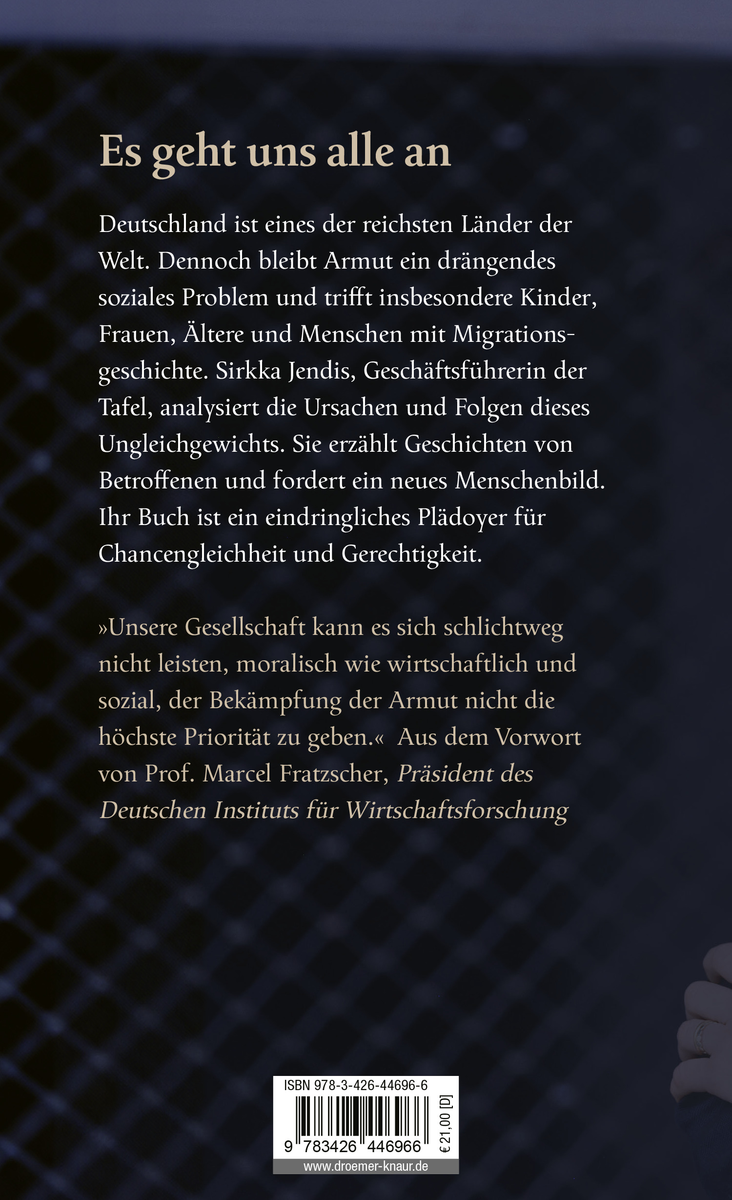 Als Geschäftsführerin von Tafel Deutschland schildert Sirkka Jendis in ihrem Sachbuch eindrücklich, was Armut im Alltag für Betroffene bedeutet. Sie analysiert verschiedene Dimensionen von Armut und stellt konkrete Forderungen an die Politik. Sirkka Jendis verbindet ihr persönliches Engagement mit gesellschaftspolitischer Schärfe. So entsteht ein eindrückliches Plädoyer für ein neues Menschenbild und eine wirksame Armutsbekämpfung. Radikales Umdenken ist nötig, wenn es um soziale Gerechtigkeit geht - in der Bildung, zwischen den Geschlechtern und zwischen den Generationen.