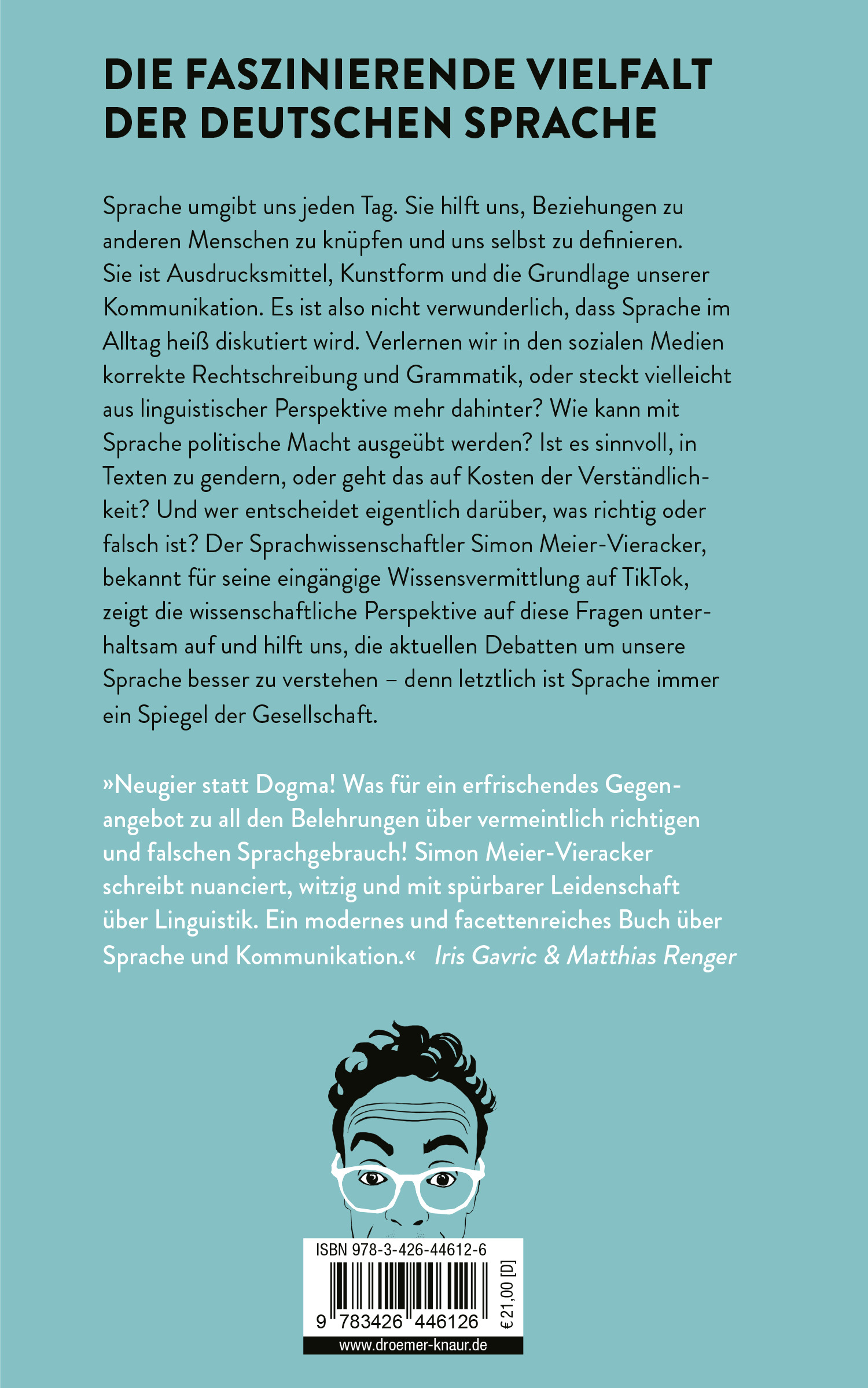 »Neugier statt Dogma! Was für ein erfrischendes Gegenangebot zu all den Belehrungen über vermeintlich richtigen und falschen Sprachgebrauch! Simon Meier-Vieracker schreibt nuanciert, witzig und mit spürbarer Leidenschaft über Linguistik. Ein modernes und facettenreiches Buch über Sprache und Kommunikation.« Iris Gavric und Matthias Renger